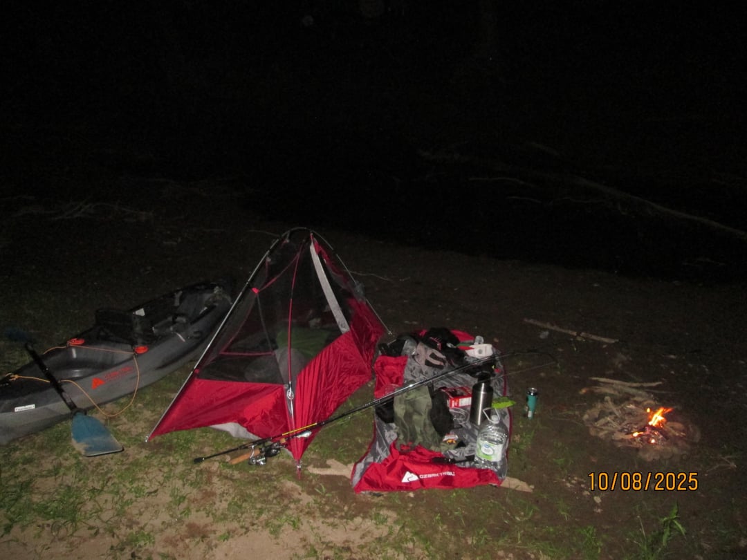 First time camping off the kayak. Couldnt get any fishing in today but so stoked for it all day tomorrow. Its amazingly peaceful being on an island alone. Tight lines boys!