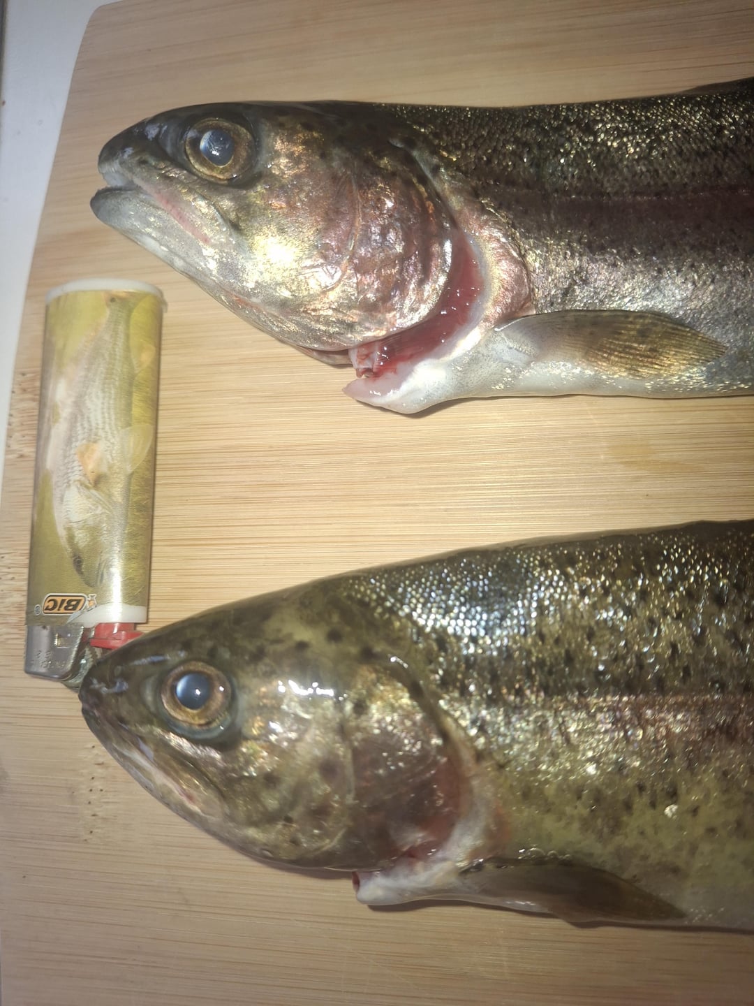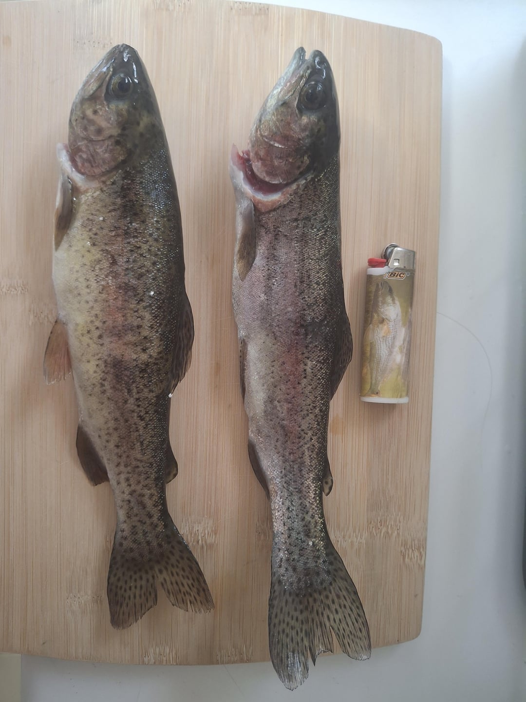 I Caught the fatter one first on a gulp micro shad. And the second one on those trout magnets garlic balls. I'm pretty sure the skinnier one is a cutbow so thats pretty cool! Posted by Ok_Future_1435