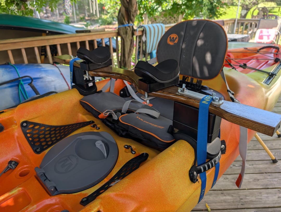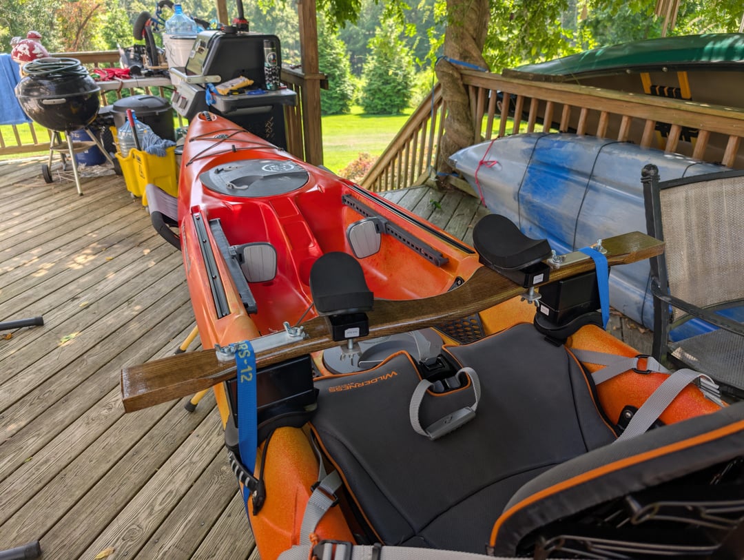 Frankly, I thought this was going to be a much more difficult task than it ended up being. The bottom cradles are from a Universal Kayak Yoke from Hidden River Yoke Shop (which I already owned and use with my Jackson Kilroy) and the top is just their normal Clamp-On Yoke Pads (also already owned and use with my canoe). The only thing I didn't have already was the yoke itself, which I got from Old Town. It's super stable and pretty comfy. I did a few laps around the property with it and it will definitley get the job done. Stoked š¤