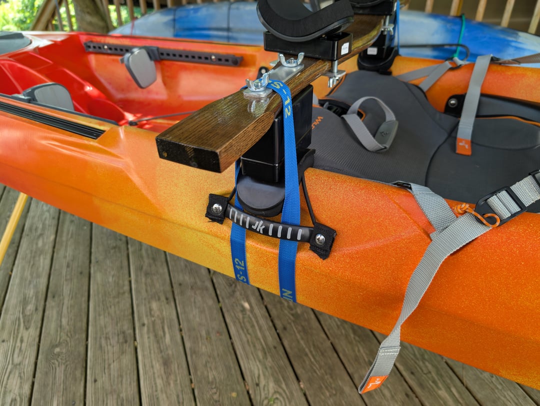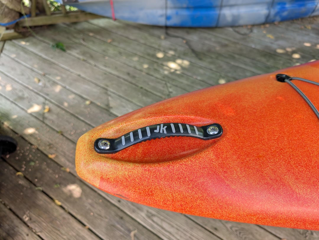 I also replaced all my grab handles (except the back one because it mounts funny) with molded Jackson handles, the same ones that my Kilroy has. I did this for a few reasons: 1) It's necessary with the kayak yoke and keeps the straps aligned, 2) Hooks don't snag them, which has been an issue up front, 3) The ridges in the handle fit my bow line perfectly and keeps it from shifting, while allowing me to wrap the line around it for opposing pull directions. Overall they are just better than the webbing handles that came with the boat, and I even kept the paddle parks intact.