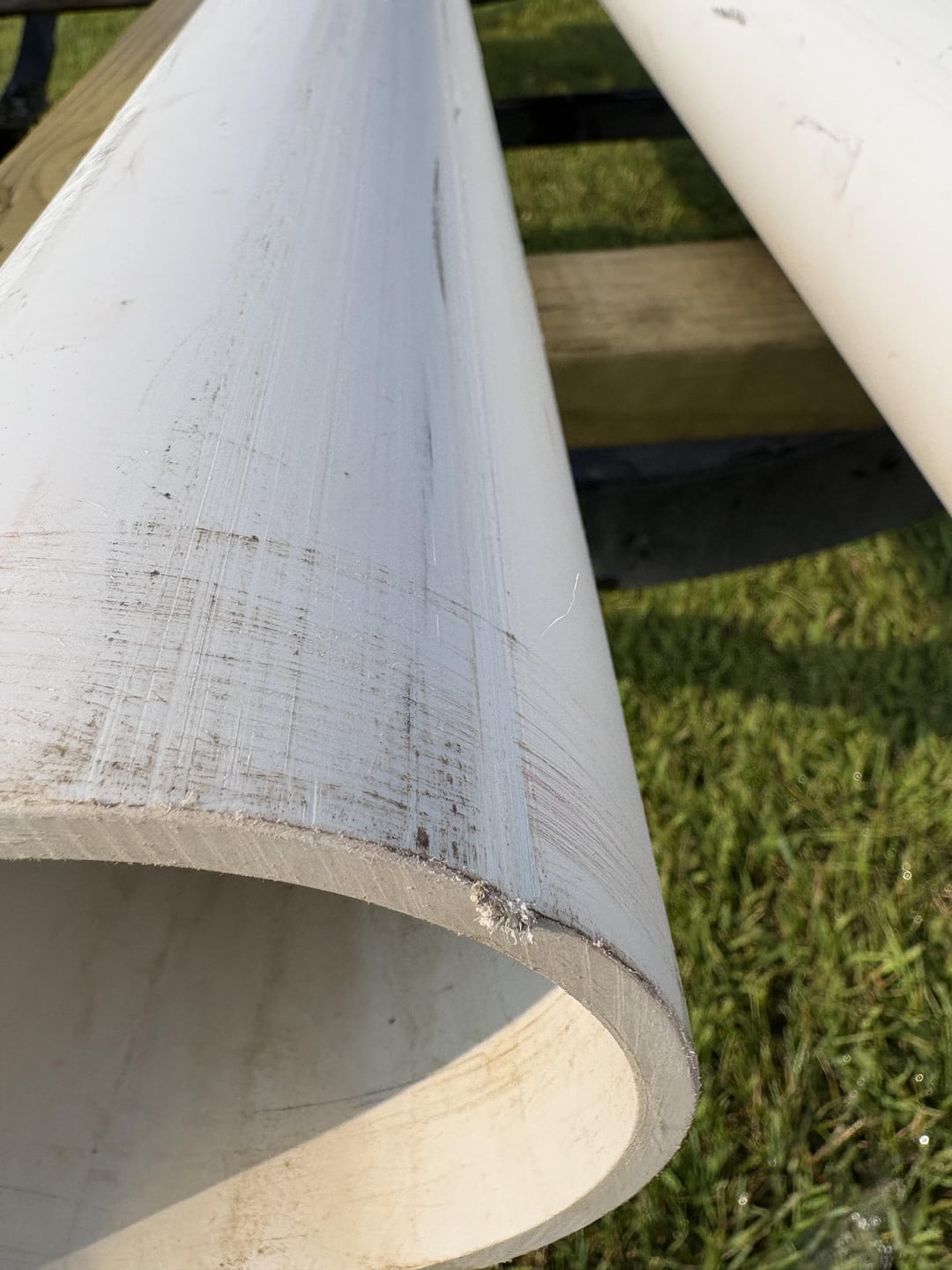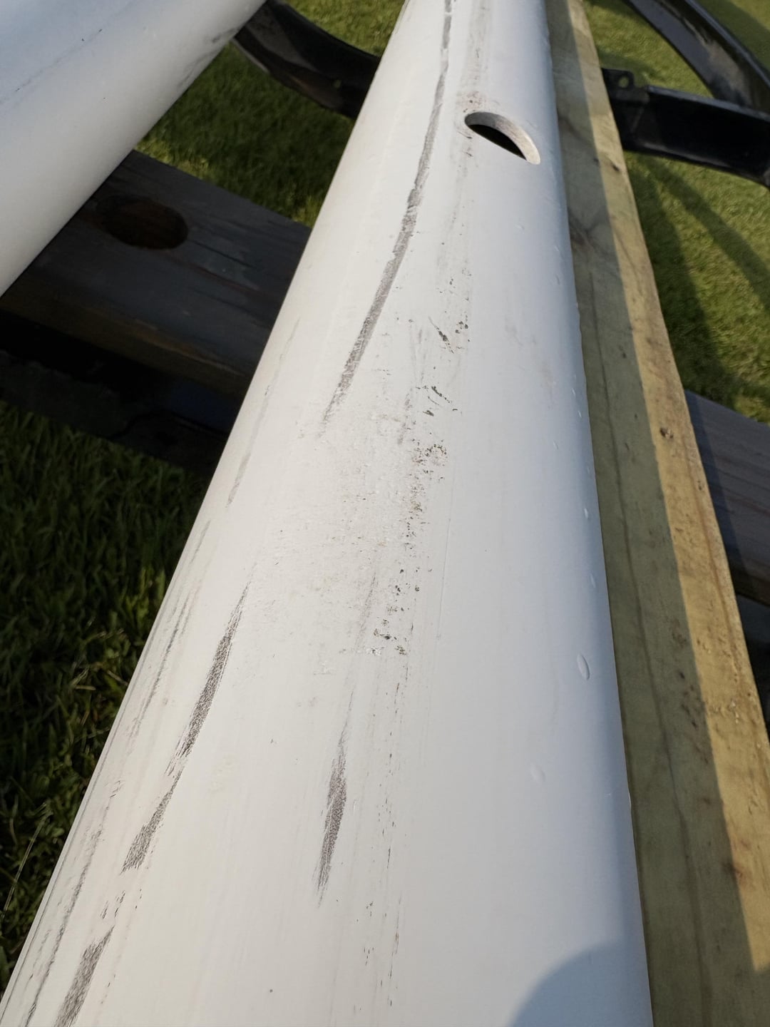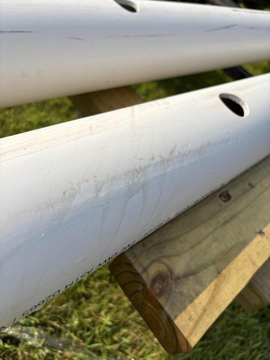 That amount of scratching is nothing. Kayaks see far worse through normal use. If you’re worried about it I would recommend wrapping your PVC with bunk carpet, I’m sure that will completely resolve the issue.