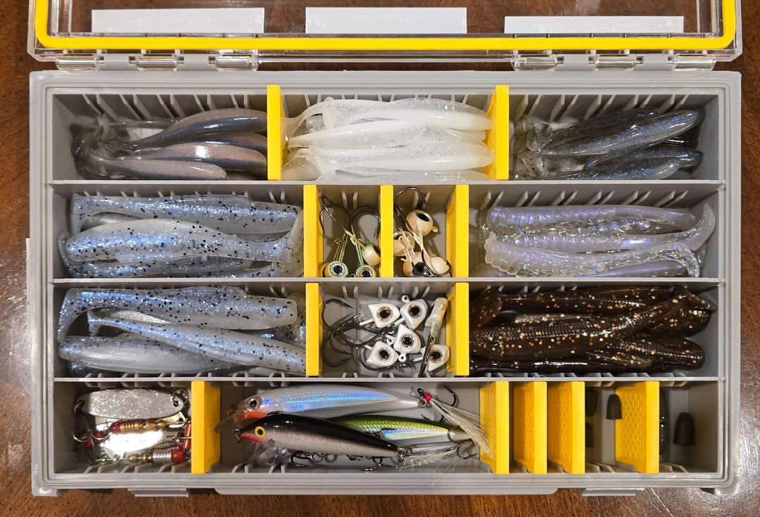 My travel tackle box for Sardinia. I have a St. Croix travel rod that I'll be using a Stradic 3000 with (shore fishing). Anything you would bring along extra? (I have some Gamakatsu Finesse and split/Dropshot hooks I'm throwing in as well. New to saltwater.