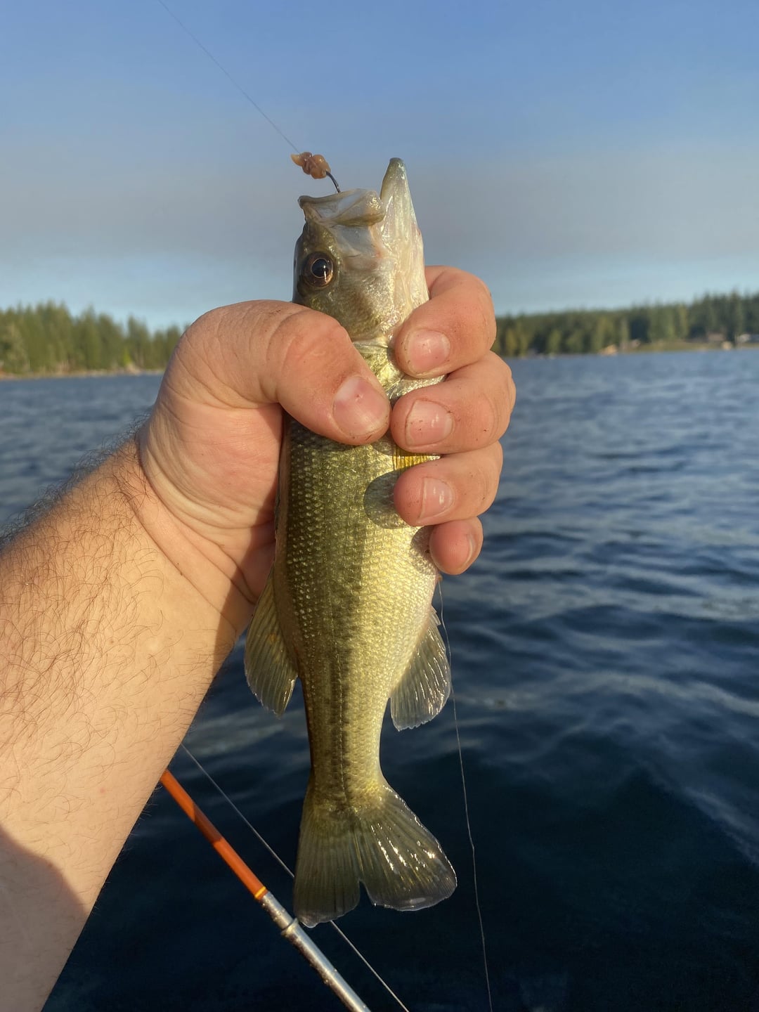 As it turns out fish wouldn’t bite anything but night crawlers… so my guess is they weren’t looking to use energy chasing on a hot day or bite something unnatural looking. Drop shot also really helped here.