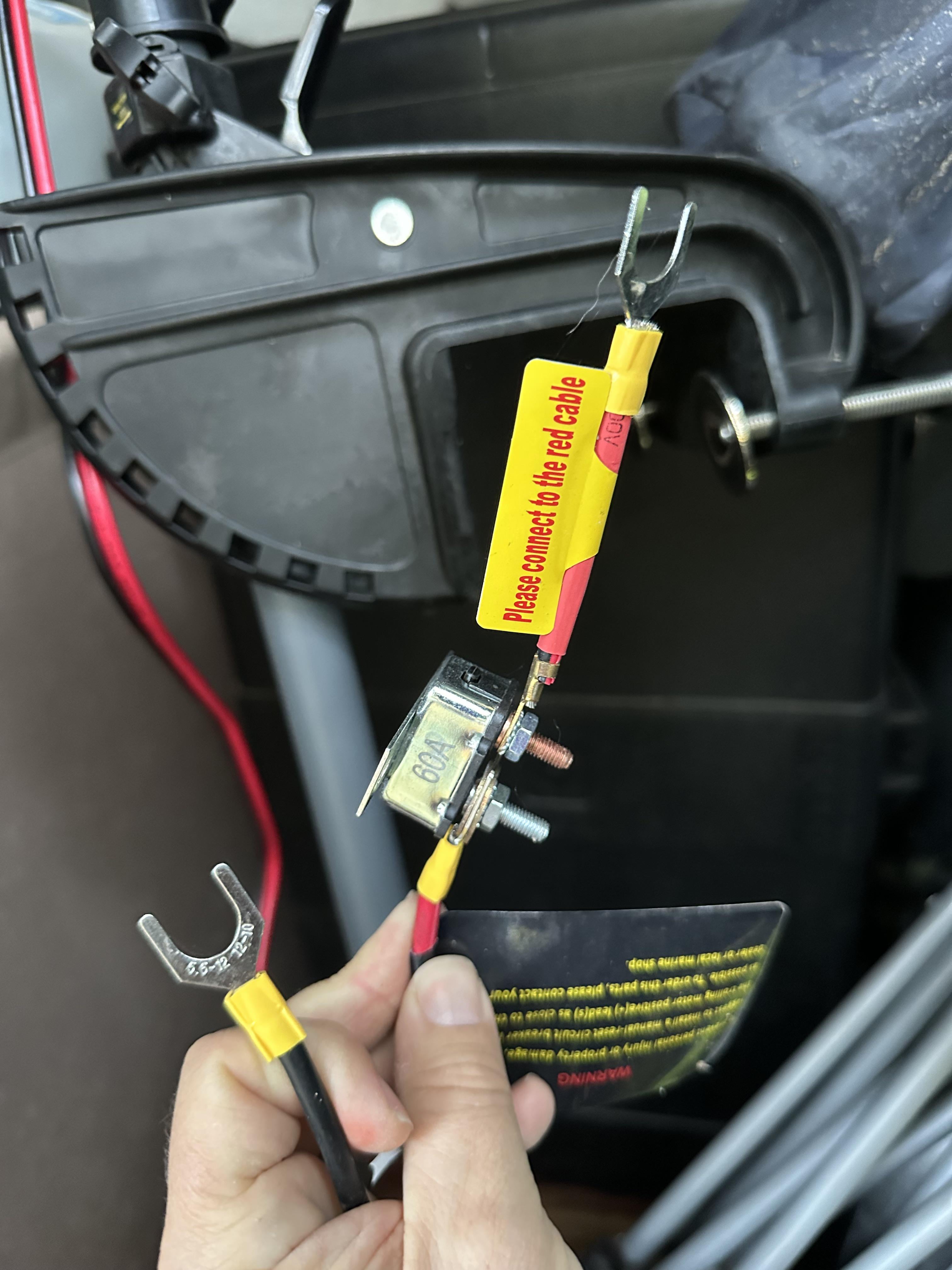 Could someone ELI5 how to install a kill switch? I don’t know anything about wiring. I’m doing good just to hook the motor to the battery lol. It’s a Newport 55lb thrust motor. The wires to attach to the battery are pictured. Where does the kill switch tie in?