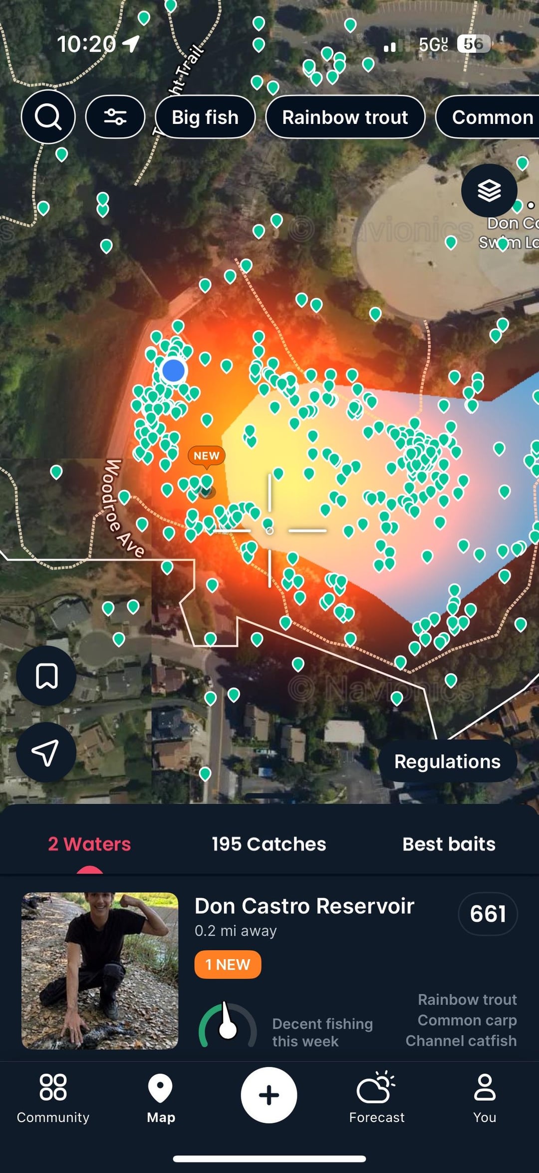 It’s a reservoir, the place I’m standing at is like where it pools and then drops off over a cliff/edge. I’ve come here 3 times, big fish and little fish constantly breaking water, but they are not biting. Their breaking water on birds, bugs, but not my bait 🙁