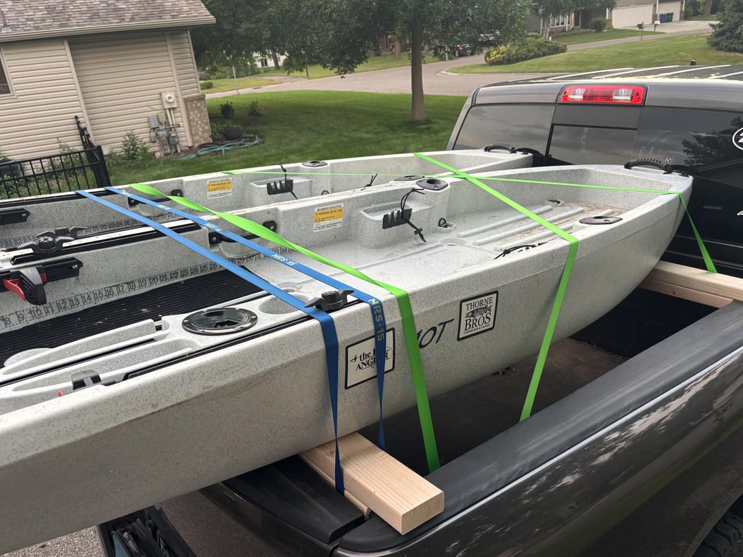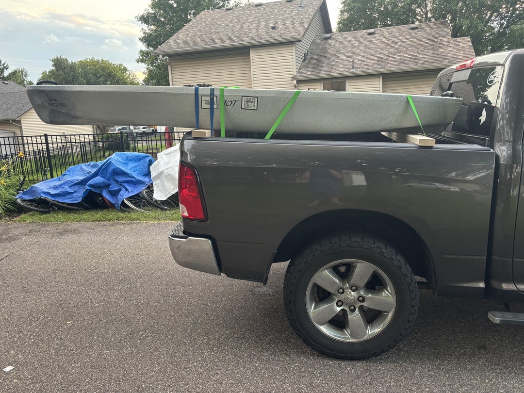 Headed out with the family for a weekend away and want to bring both yaks and 200lbs of other stuff, lol. I think I can fit both kayaks in the bed with everything piled on top under my tonneau but played with some 2x4s quick for an over the bed rack. They are stable with no straps so the center of mass is in the bed but the overhang makes me a little uneasy. Couple hours on the highway. What do you think?