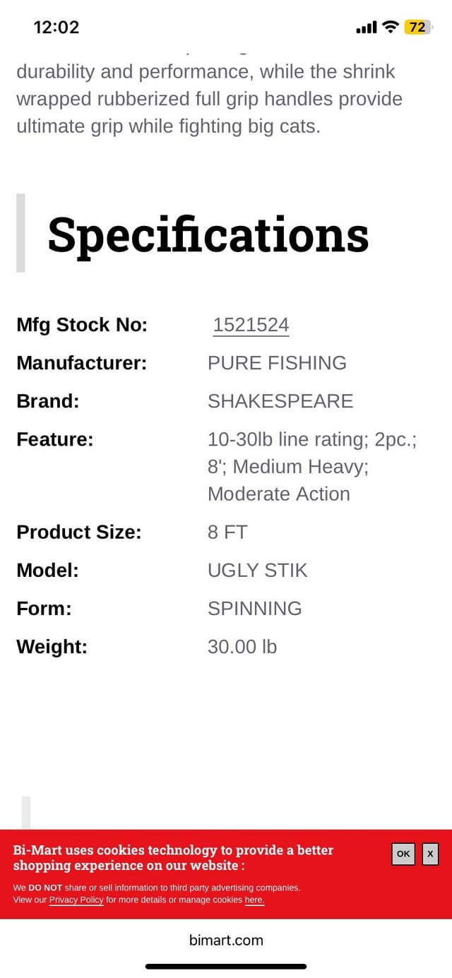 Ugly stik Shakespeare: 8 foot long and I would prefer a smaller one