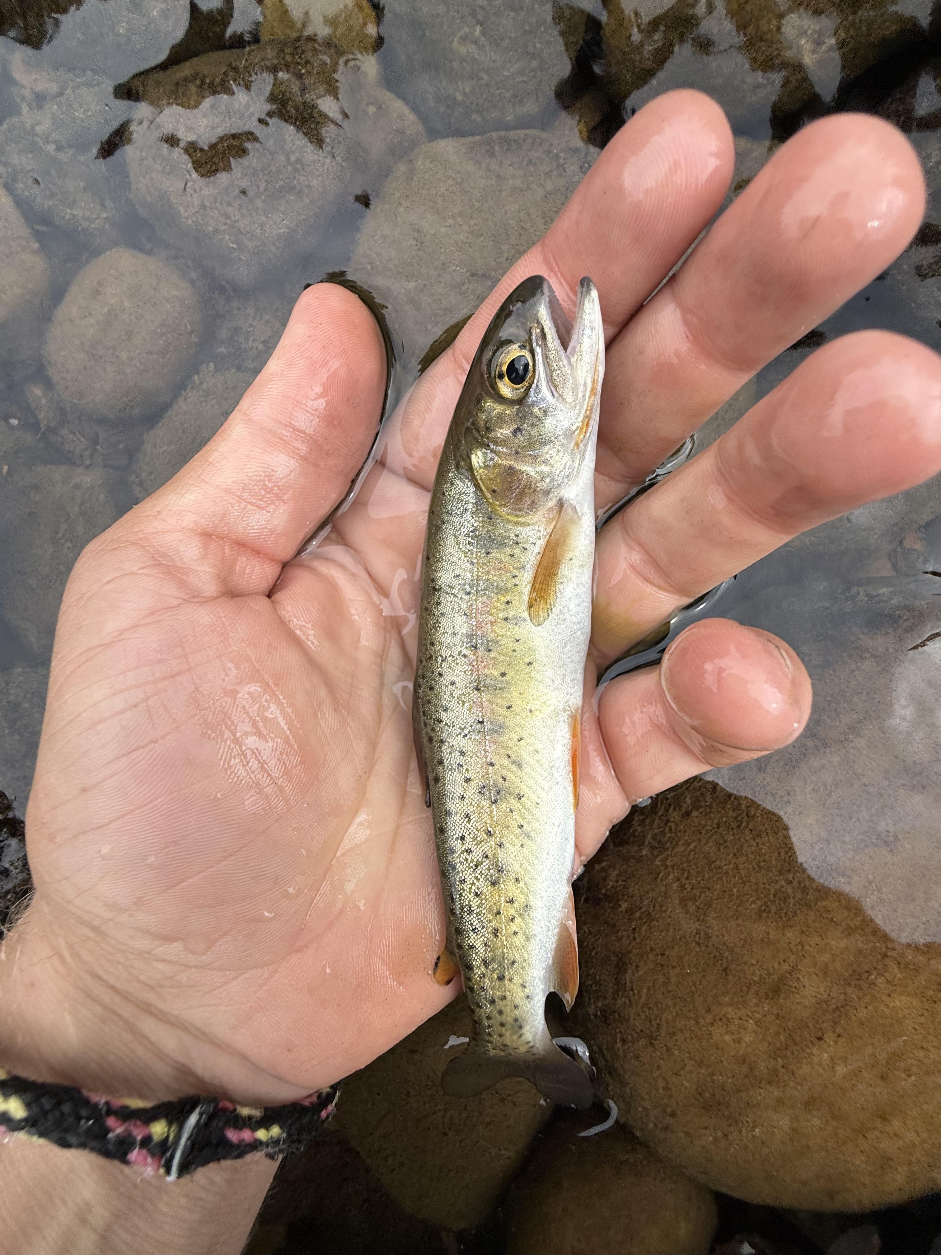 I’m going with cutbow. Are they in the area you’re in? Cheek patch is a little faint but still there, side and belly are golden tan to silver in color which matches, but idk.