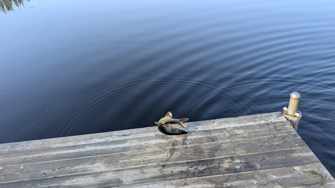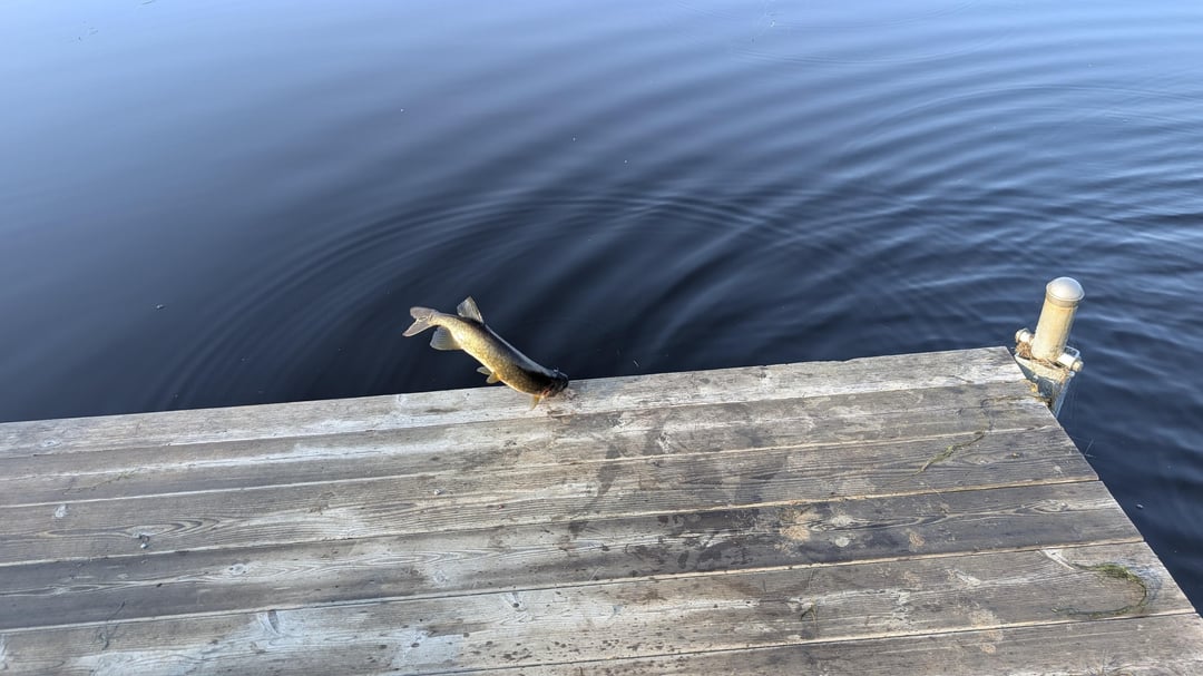 Designer_Repair9884 on August 17, 2025 12:26 pm Could be wrong, but seems like a chain pickerel or a pike. Did its teeth snap your line when you were pulling it in?