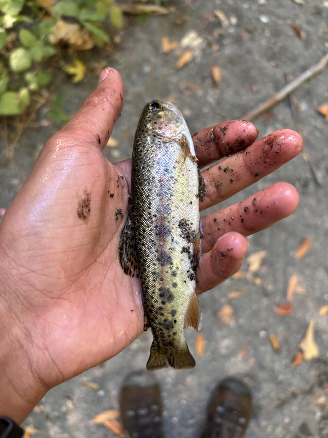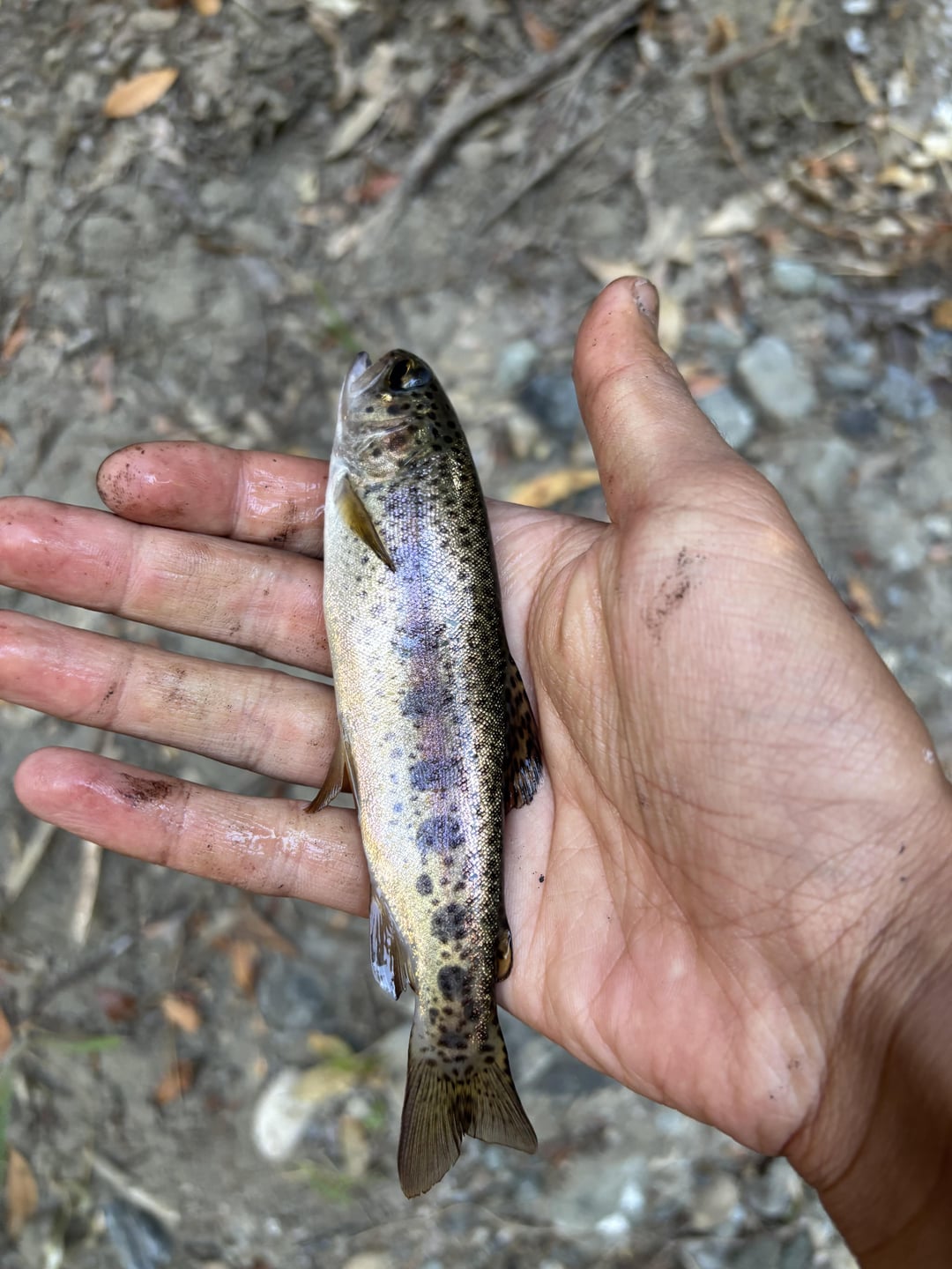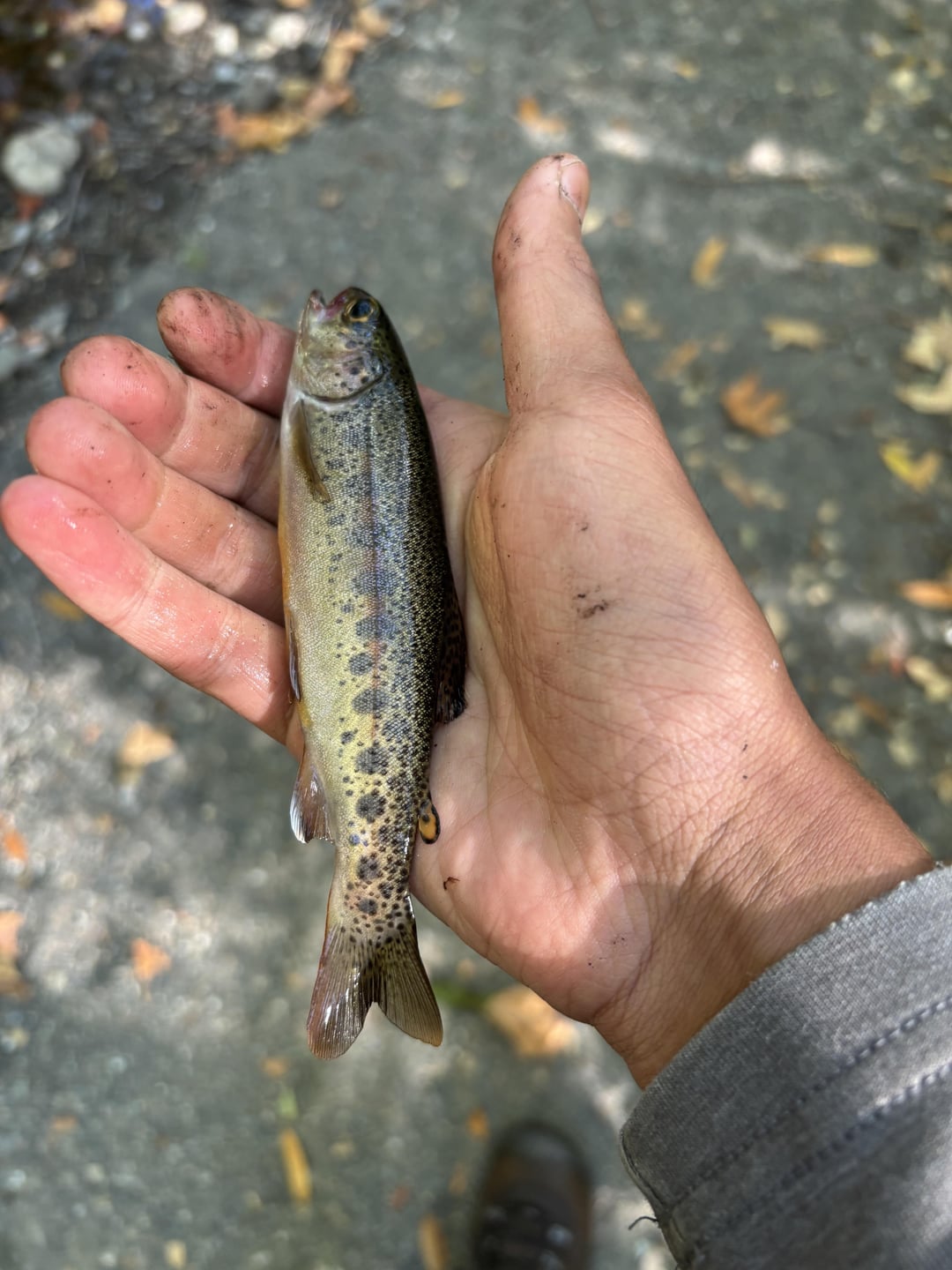 Behind my house, there is a small creek. 4 feet wide. I’ve never seen any fish in this small creek, but one day it rained, and the next day I went out to check the creek out and to my surprise, there were a lot of rainbow trout. I ran back into my house as fast as I could to grab my rod rigged on a small hook with a fluorocarbon leader, and grabbed some night crawlers from worm farm that I use for fishing. Was so fun, caught my first trouts ever!!