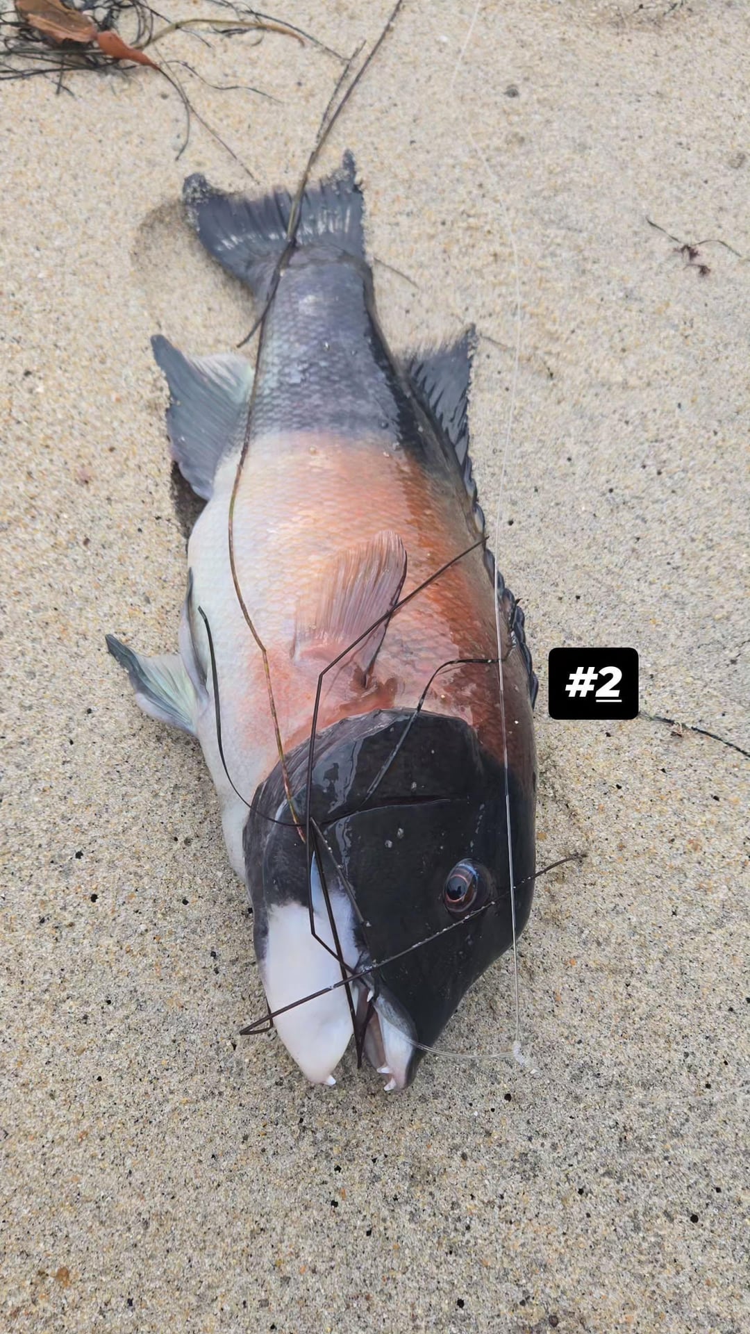 Got a limit of some surf sheep yesterday. These fish are great eating, I'd say they're up there with halibut! It's going to be ceviche time soon. Fun fact about these fish is that they are all born female and the largest and most dominant female of the reef will convert itself into a male. As you see here, we have one fish that is gray and slightly pinkish and is beginning to have a more pronounced forehead. This fish was in the process of transitioning into a male. The other fish has a distinct black-red-black coloration and a defined forehead. This fish has already transitioned and is now a male.