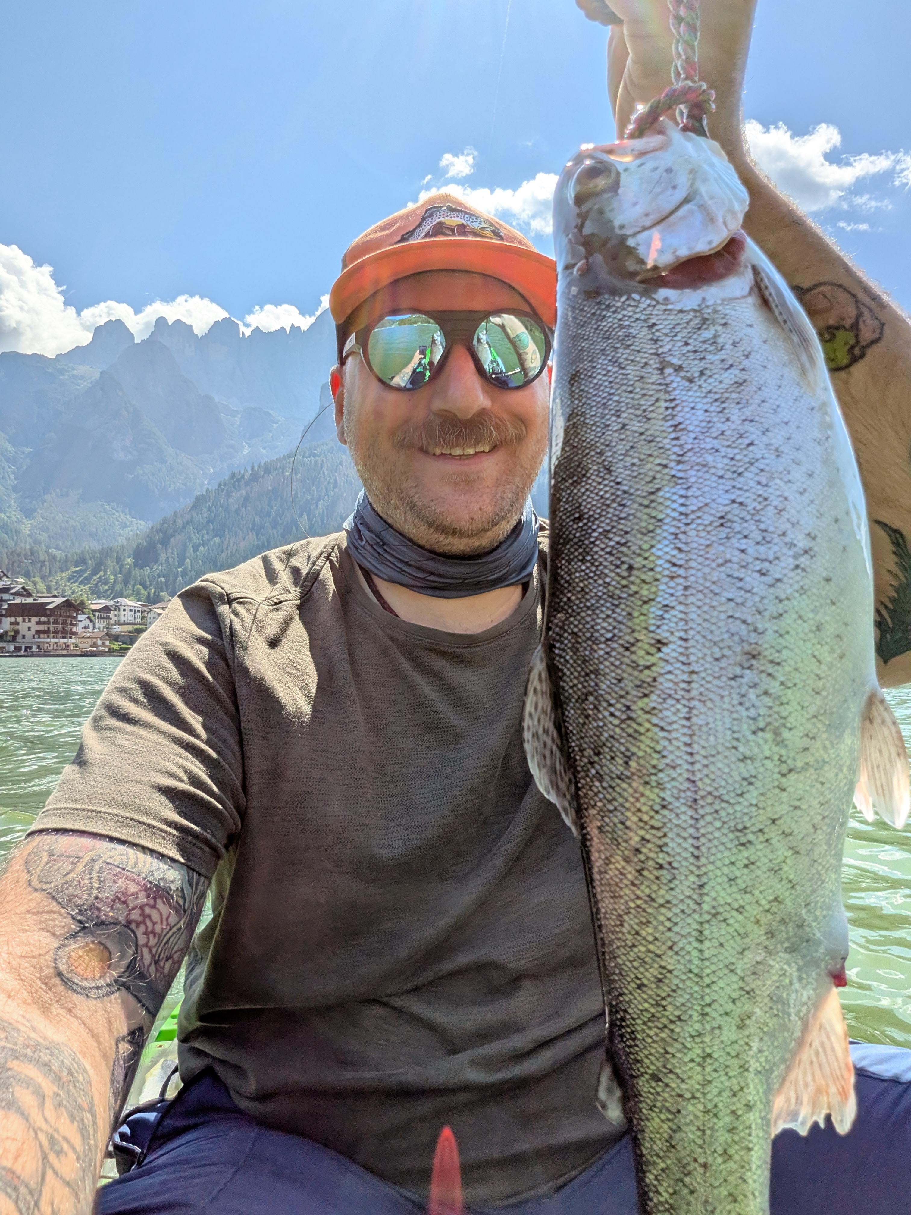 Got this lovely chonky trout today in Lake Alleghe, in the Dolomites in Italy. It's nice to catch a decent sized one for a change! Posted by mrpanuz