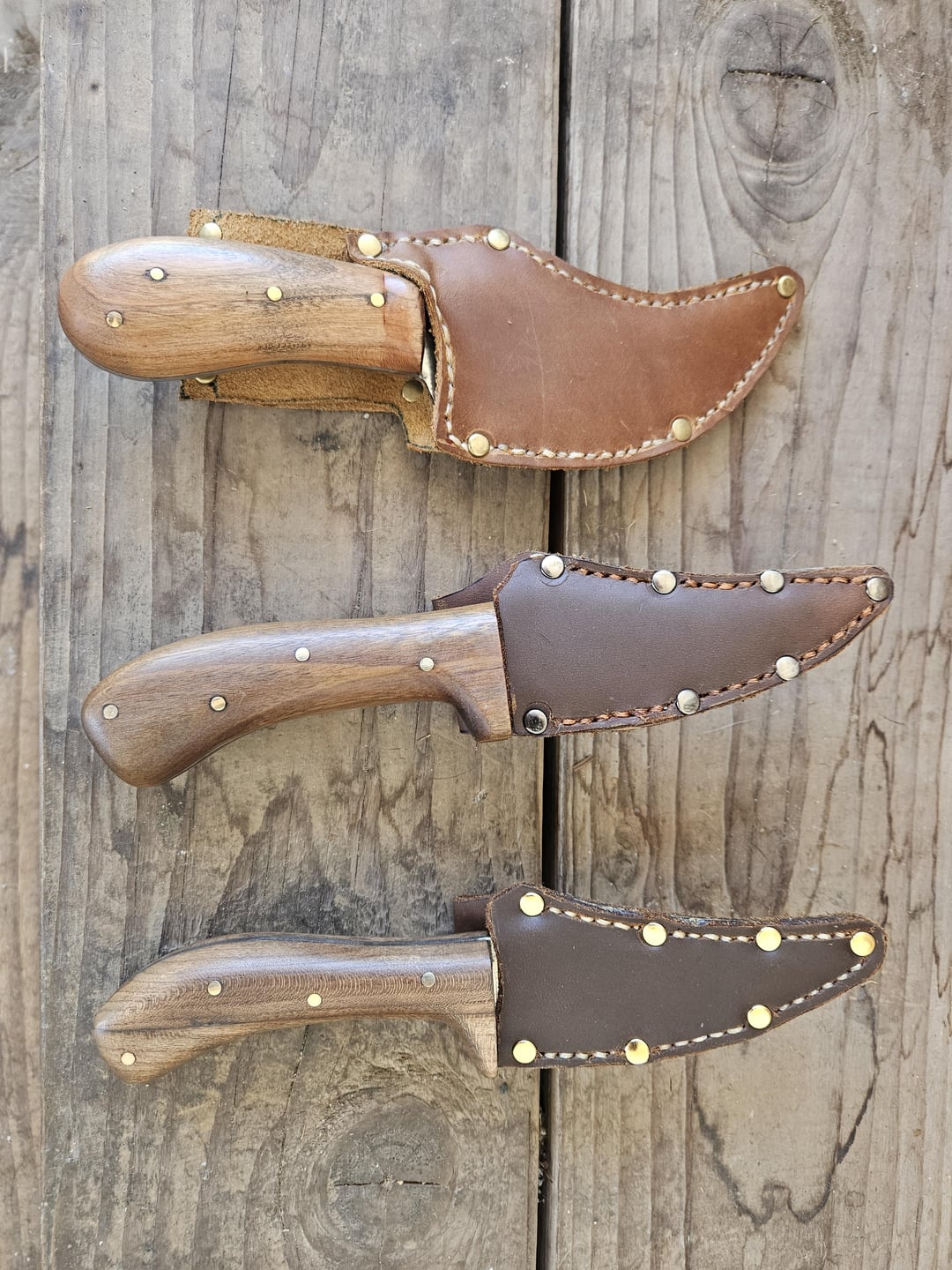 Hand crafted hunting and fishing knives with exotic hardwood handle,and leather sheath. Contact Keith Brown at keith.brown72@gmail.com if you're interested thank you
