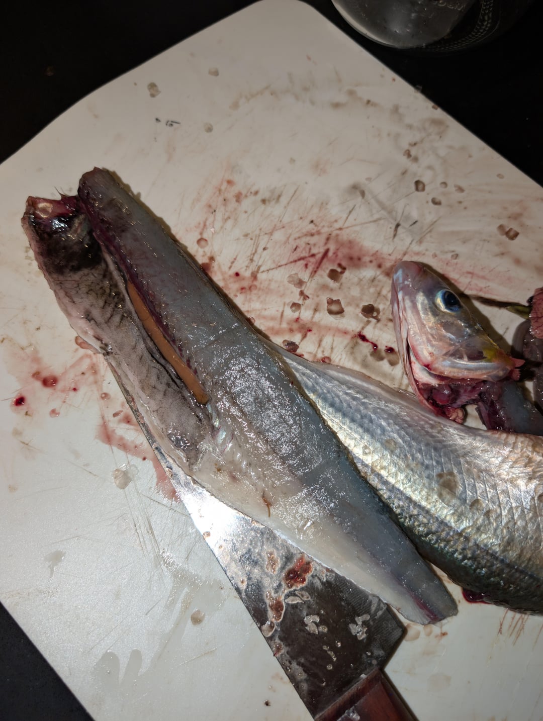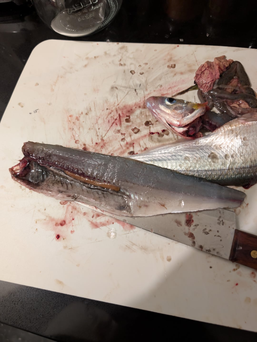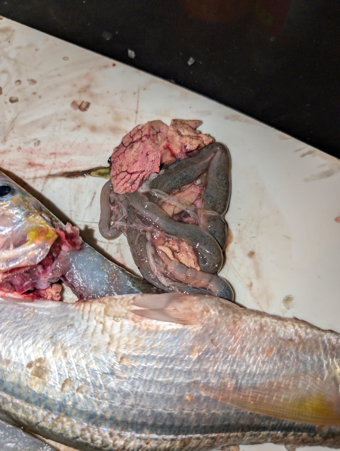 Caught this Jack smelt over in Malibu California and while processing it I noticed the meat was kind of blackish in the guts too. Is this normal?