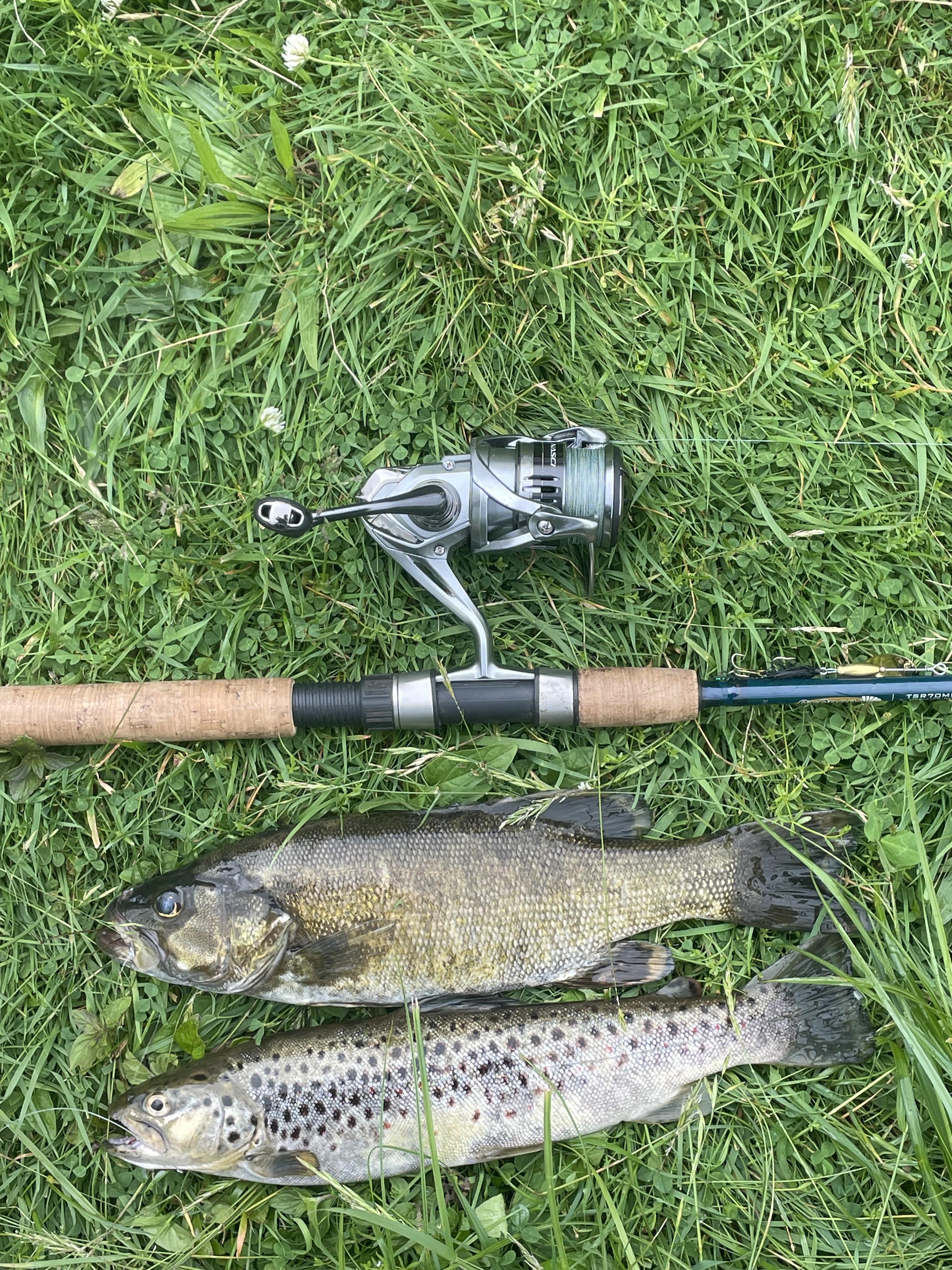 Heres a smallie and a trout next to my nasci šŸ™‚ (dw these fish were humanely killed and eaten)