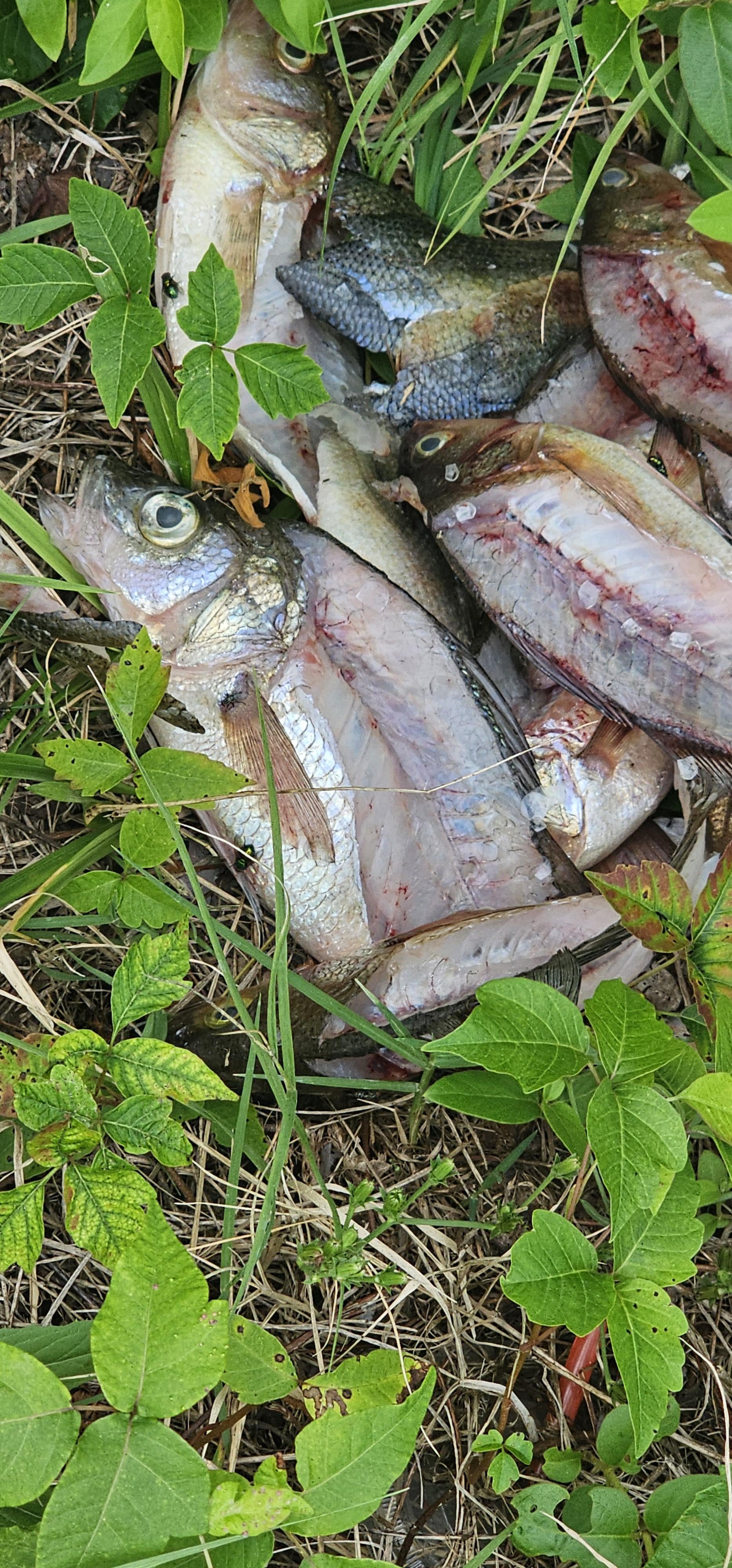 Pulled over by a creek on my way home. Parked the car, walked down a cool path. Passed by someone's fileted fish and got excited. Cast my lures, got snagged. Tried to shake it off, the top park of my rod came off. Watched with my mouth open slide down the line and into the water. I heard a couple of guys at a nearby bussiness laughing. Im certain it was about something else but at the moment they were definitely laughing at me. Now I need a new rod. Anyways what type of fish are these? Imma try again soon.