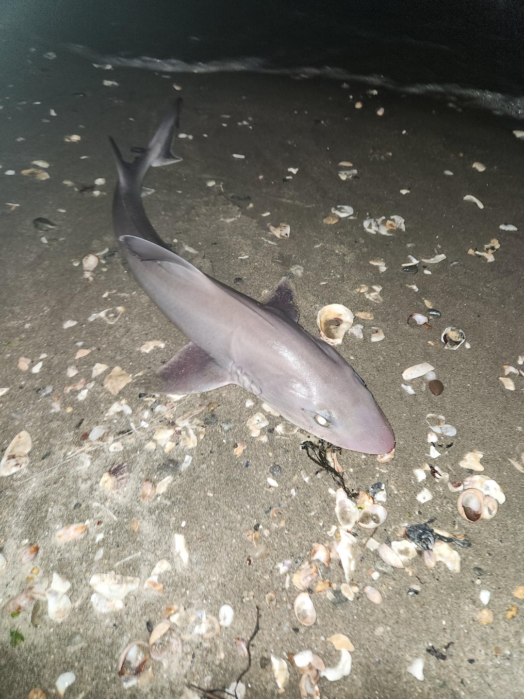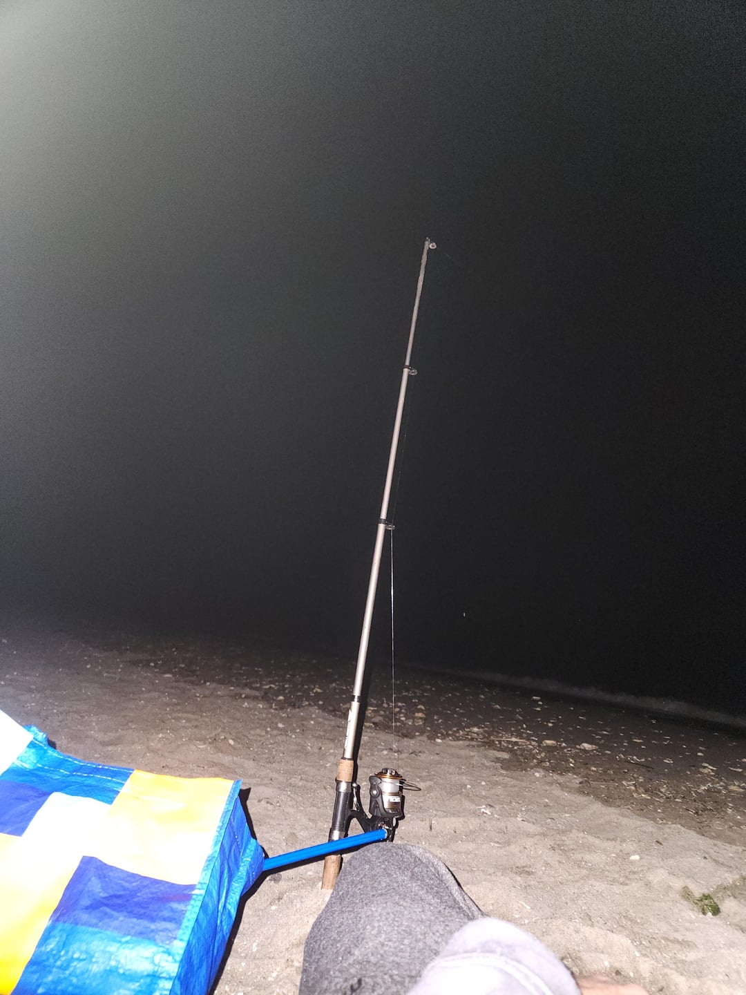 Wife planned a fishing trip said to pack my fishing gear. I only have freshwater. And very little salt water stuff that I've collected. I grab a box of nightcrawlers. We pull up and it's a beach campsite..I catch this with 12lb mono and a wire runner.