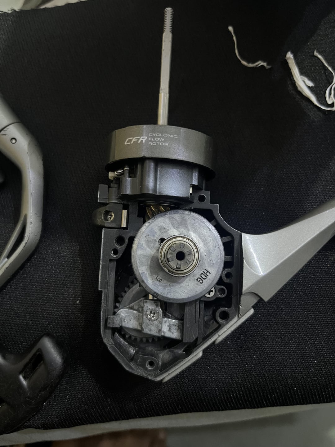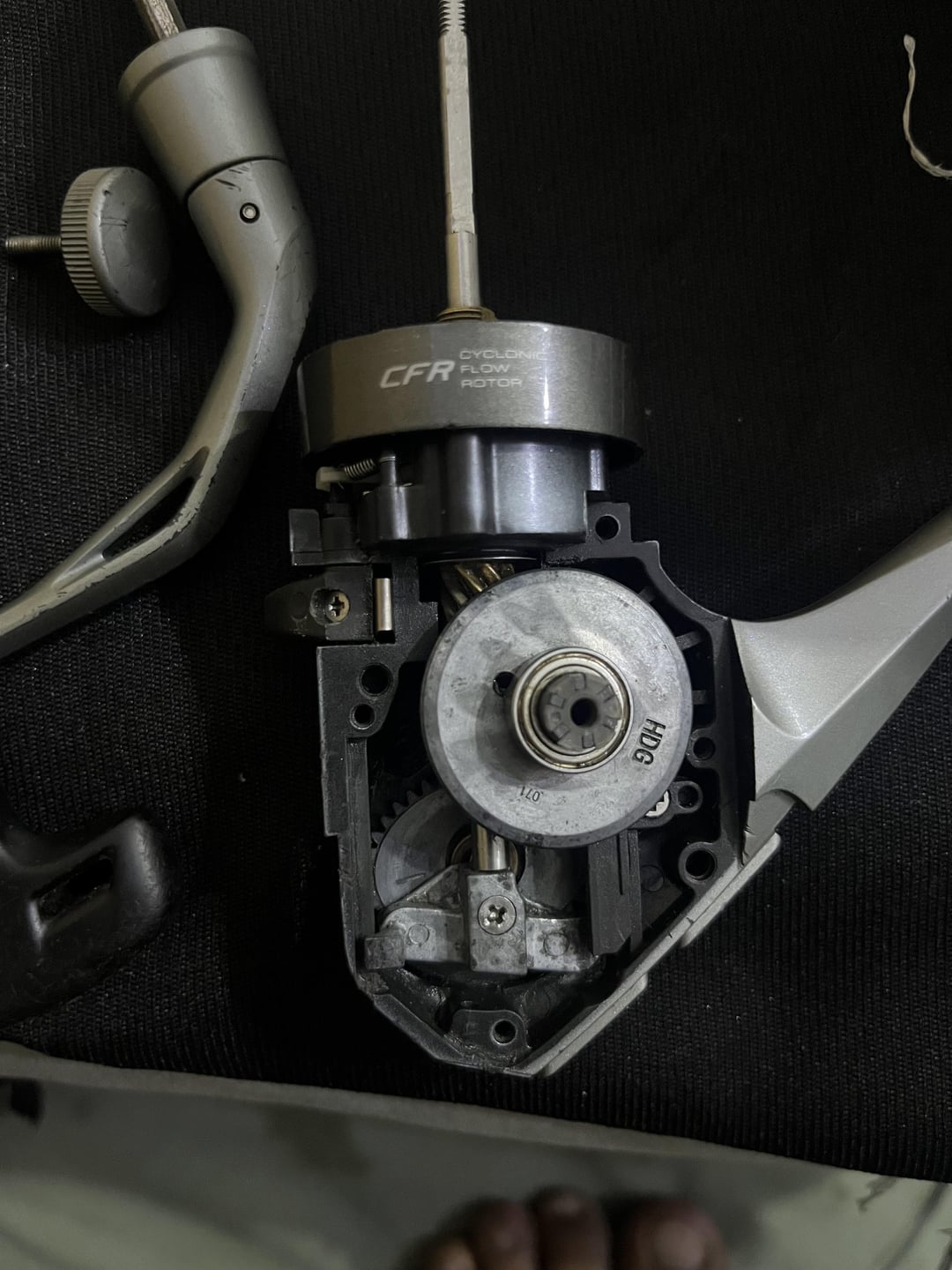 I’m working on an Okuma Avenger 6000 reel. The oscillation gear screw doesn’t tighten completely, and the gear moves slightly—causing the reel to run smoothly only in one direction.