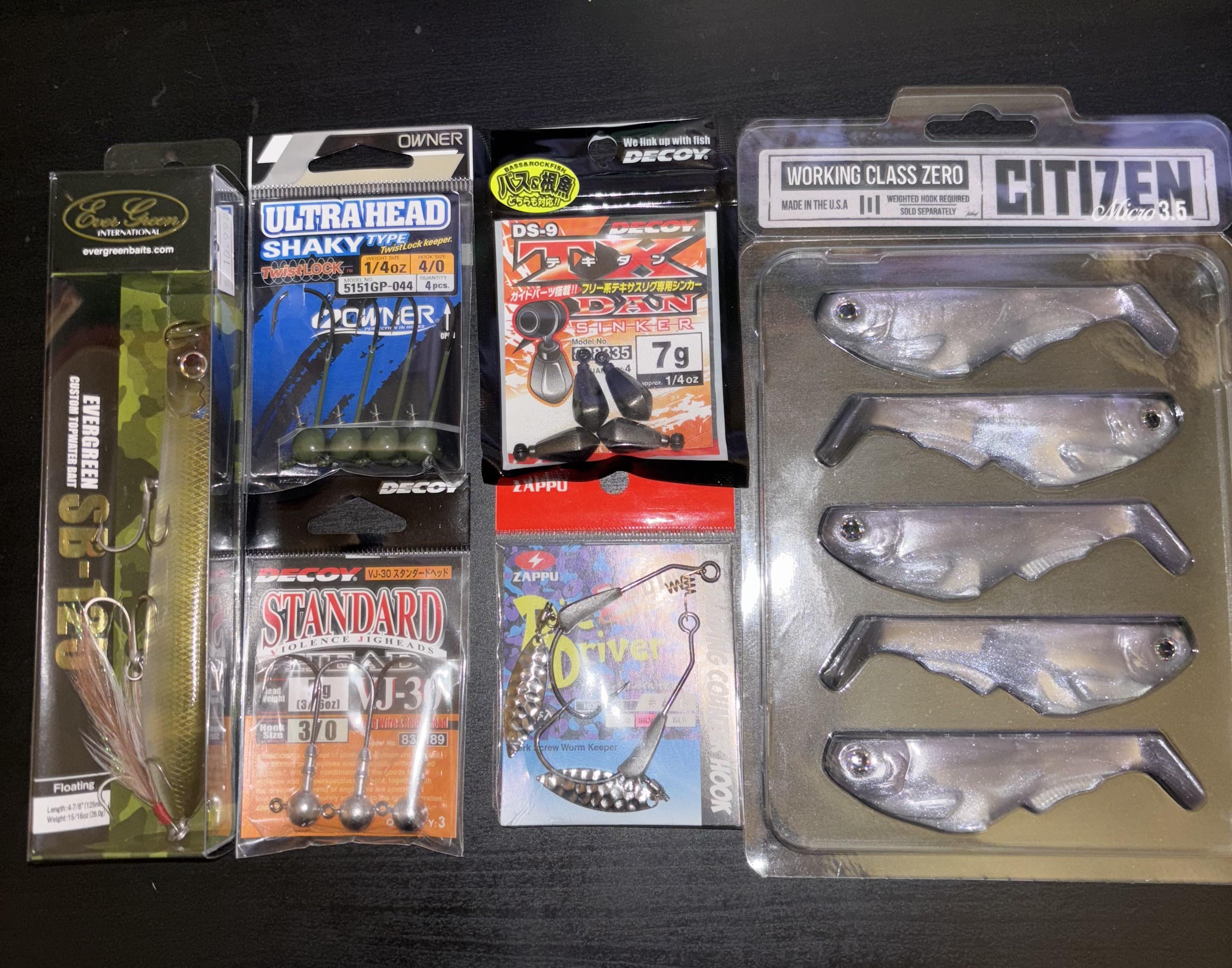 My local tackle store had a re-stocking of Working Class Zero Citizen Micros so I had to go and pick some up. I’ve never tried any Working Class Zero product before so we will see how they are. Picked up some Zappu Blading Pile Driver hooks for them. The rest of the items are things I needed or wanted.