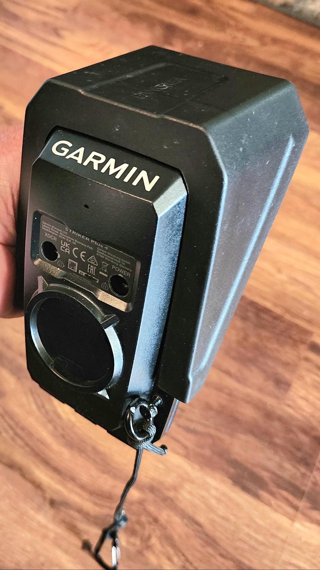 My solution to my fear knocking my most expensive piece of gear of the kayak with my knee or paddle. I learned that the threaded mounting hole on the Striker 4 takes an M4 bolt. So I got some M4 eye-bolts and now I clip it to the hull.