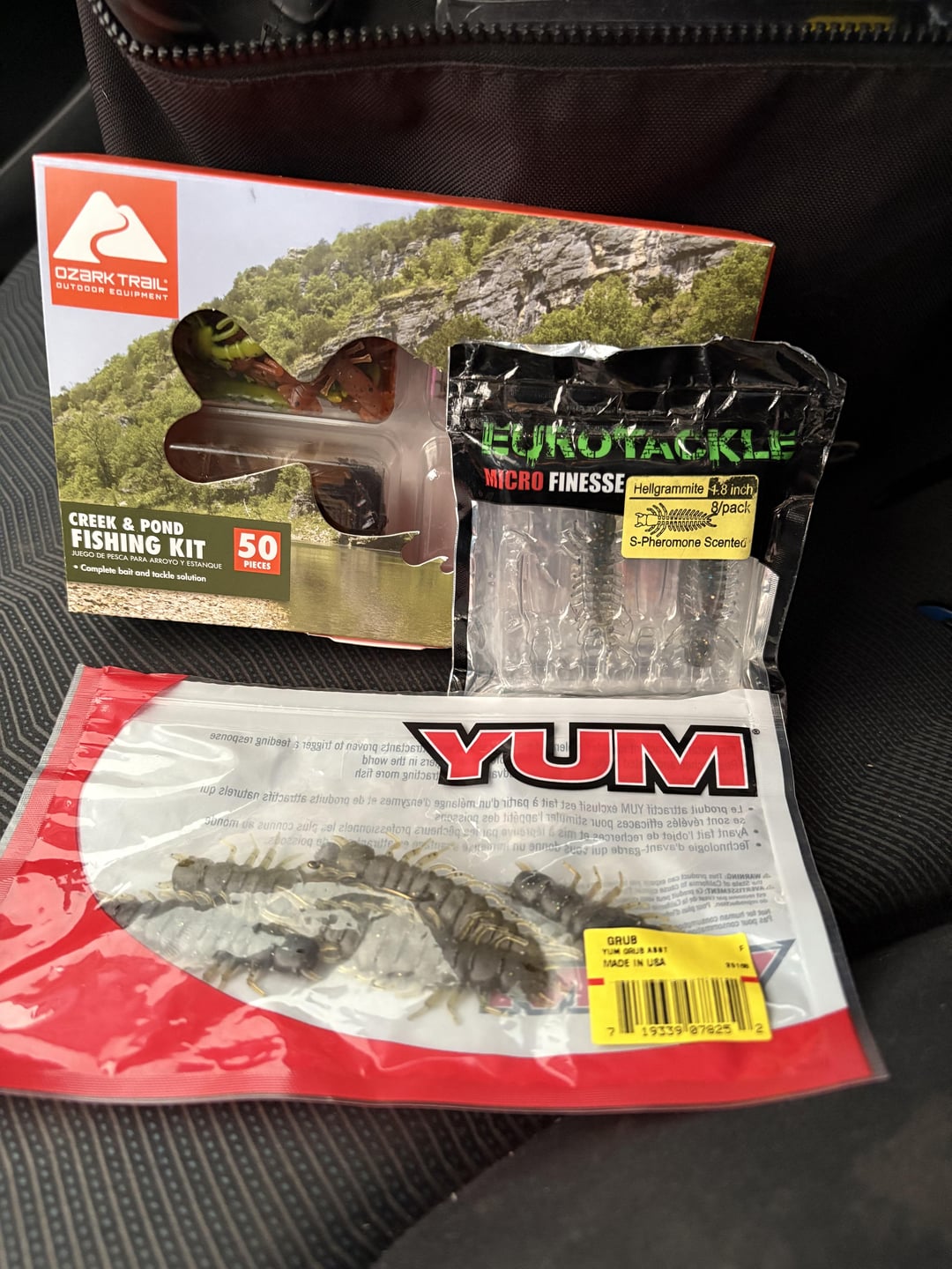 I was down to just one of my favorite hellgrammite so I had to have some more that little box from Walmart brings 8 of those lures that I’ve been using lately for dropshot and they work great also…