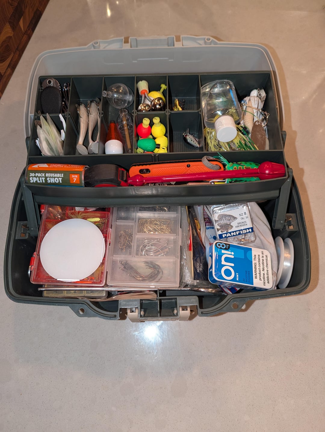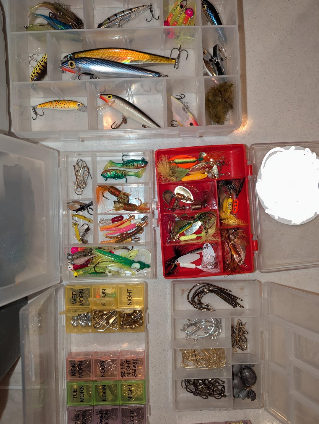 I was temporarily separated from my tackle box and just got it back. Merged the tackle I got in the mean time with the old box, took some other things out. This is my current setup and it makes me really happy to have everything in one spot again.