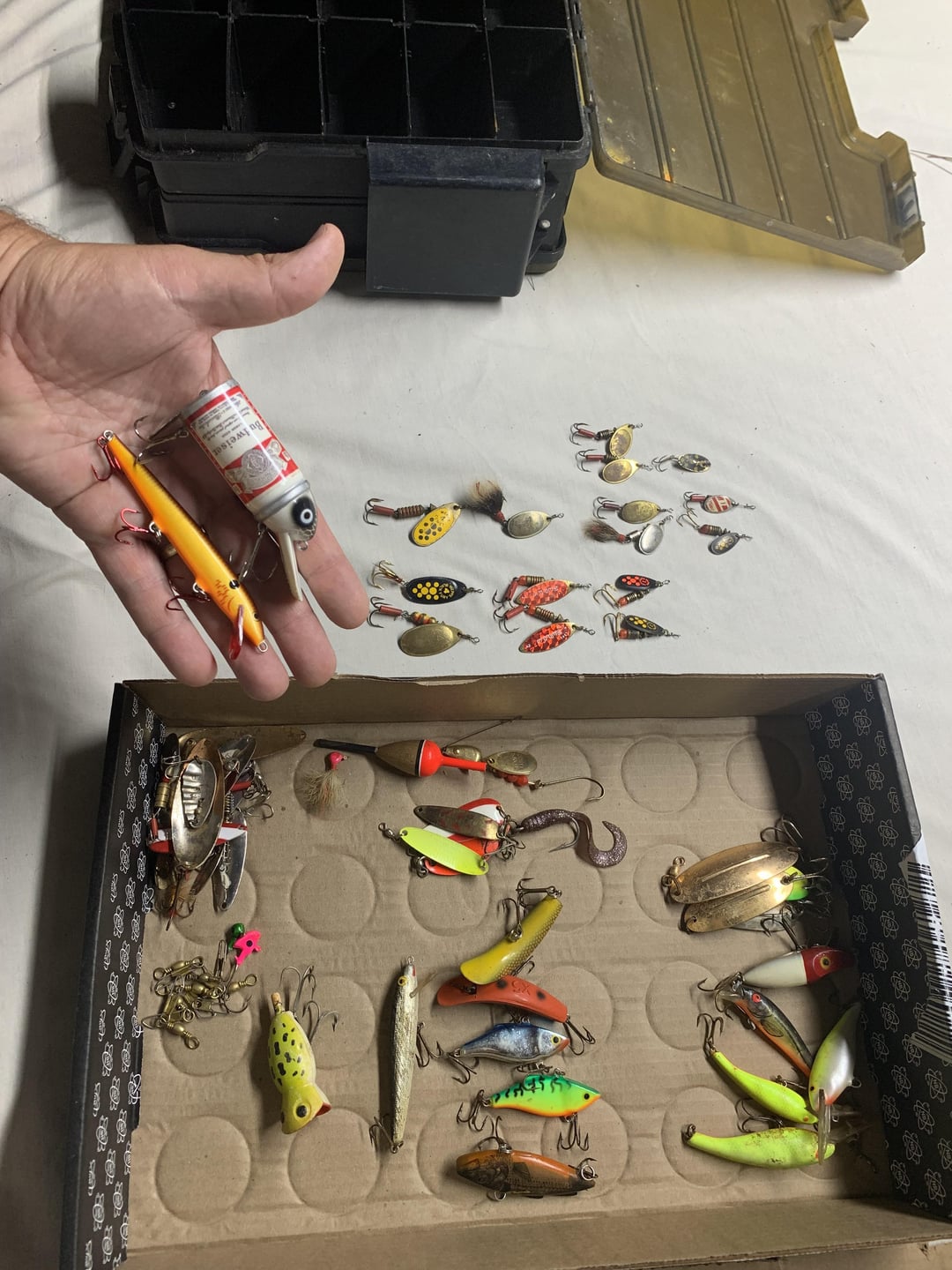 Picked this tackle box up at an antique store for $45, and it feels like more than just a pile of lures. Inside were: