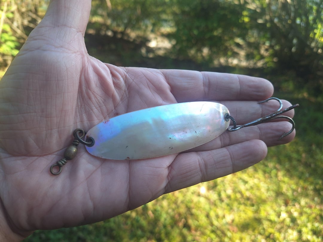This has really piqued my interest. Seems Pfleuger made real mother of pearl lures back in the day. This is what I’ve found (so far), but not much else info. [https://uslures.com/-pflueger-wobbler-spoon-9526.html](https://uslures.com/-pflueger-wobbler-spoon-9526.html)