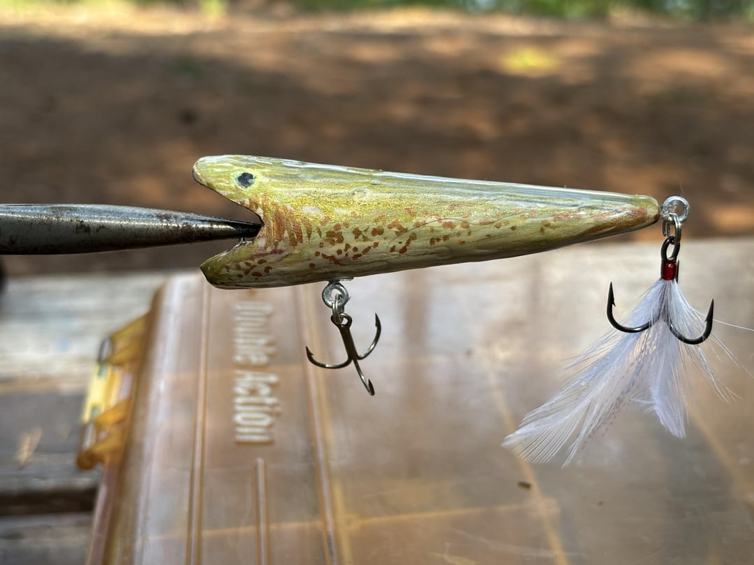 I shaped and assembled, wife painted. 2nd cast caught a nice smallmouth at Trinity lake. I’m pretty proud… Posted by Crx2nv