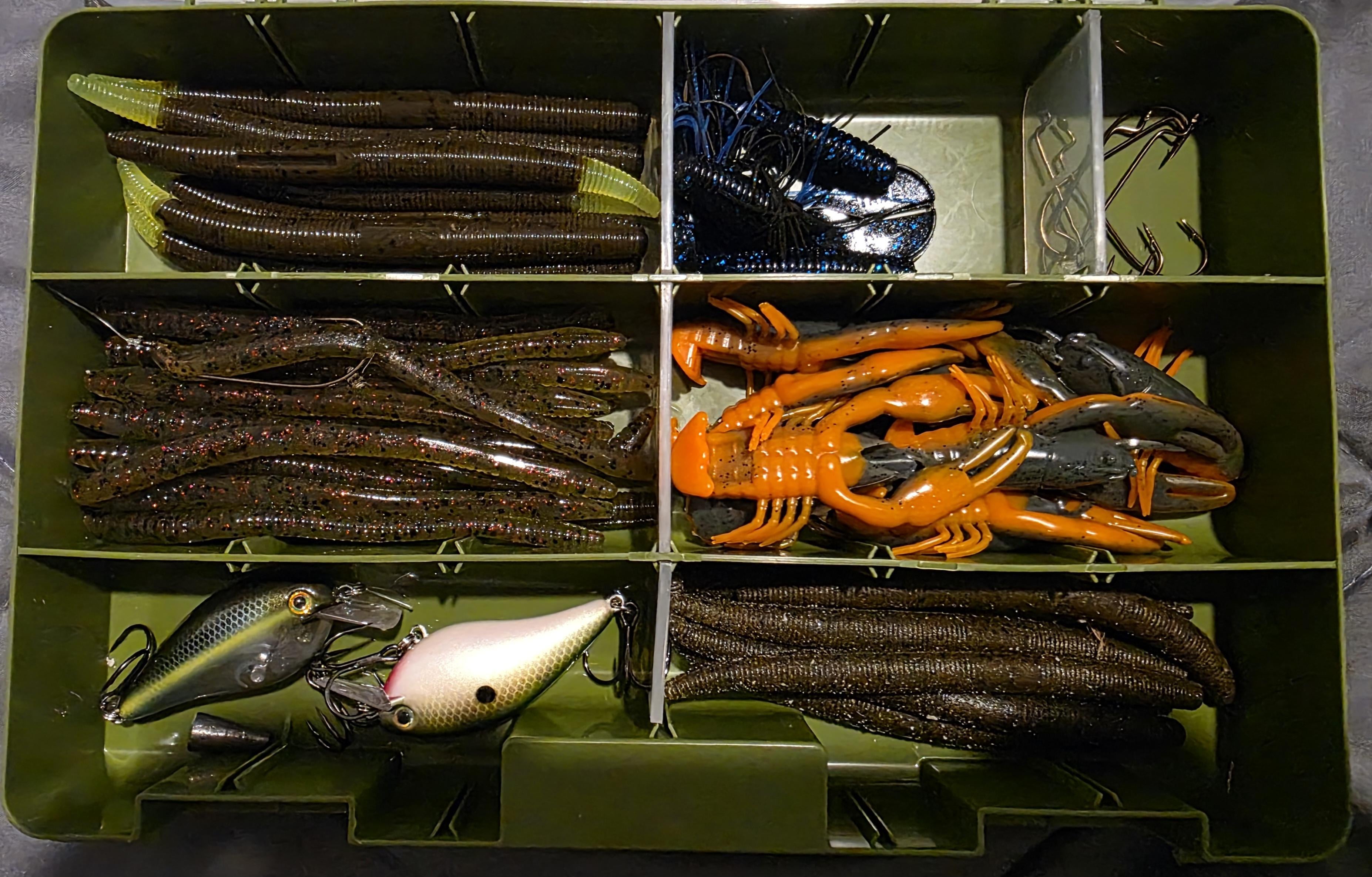 Side note, you’ll want to keep those soft plastic baits in the original packaging or at least a ziploc bag or they’re likely to start melting into each other.