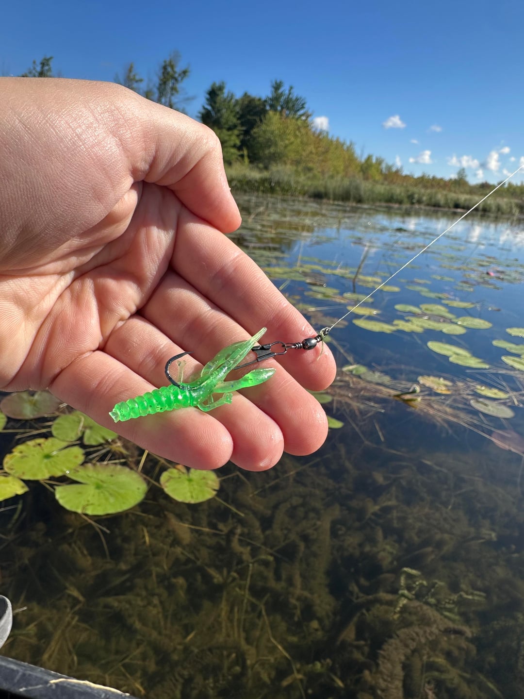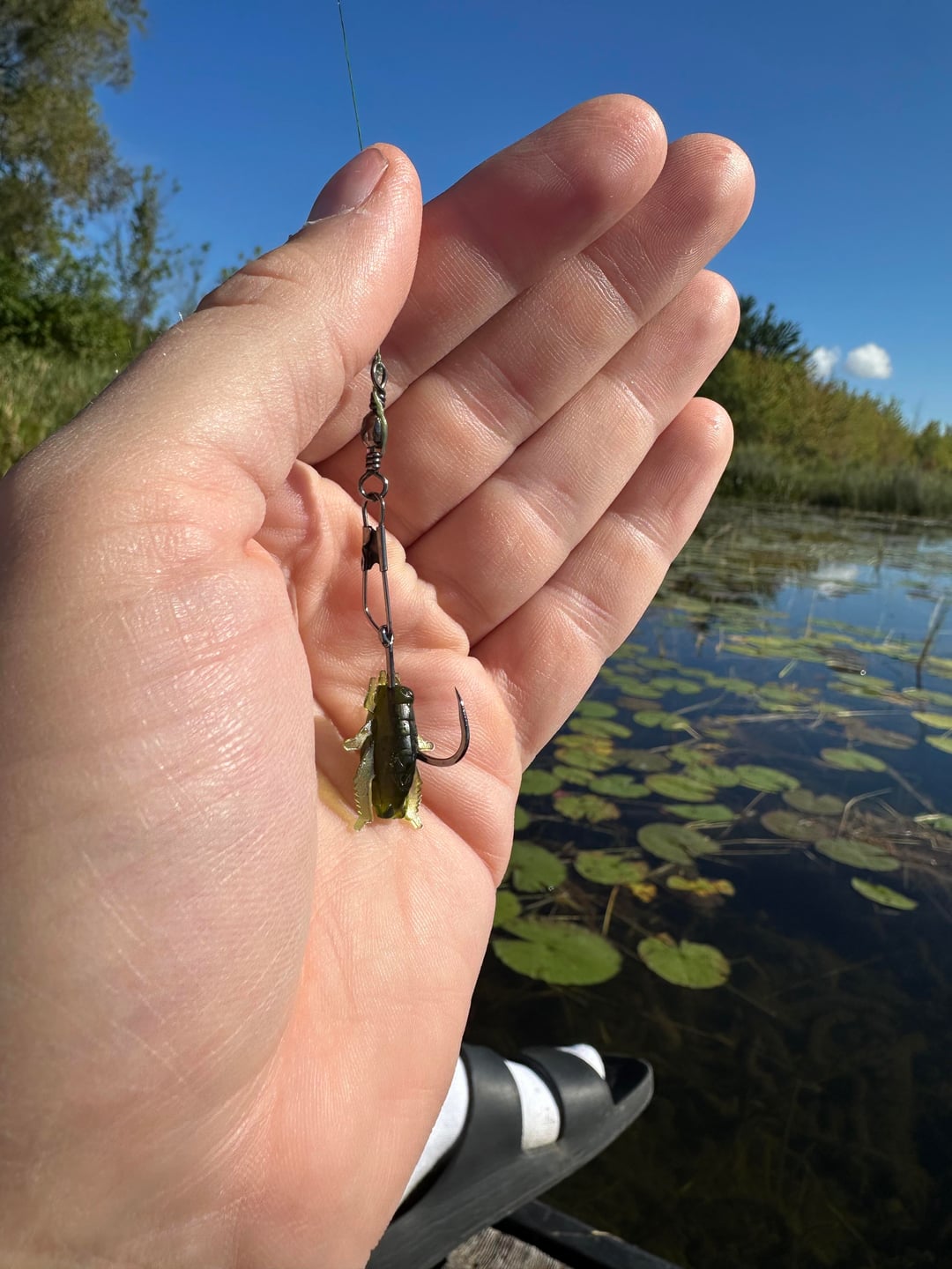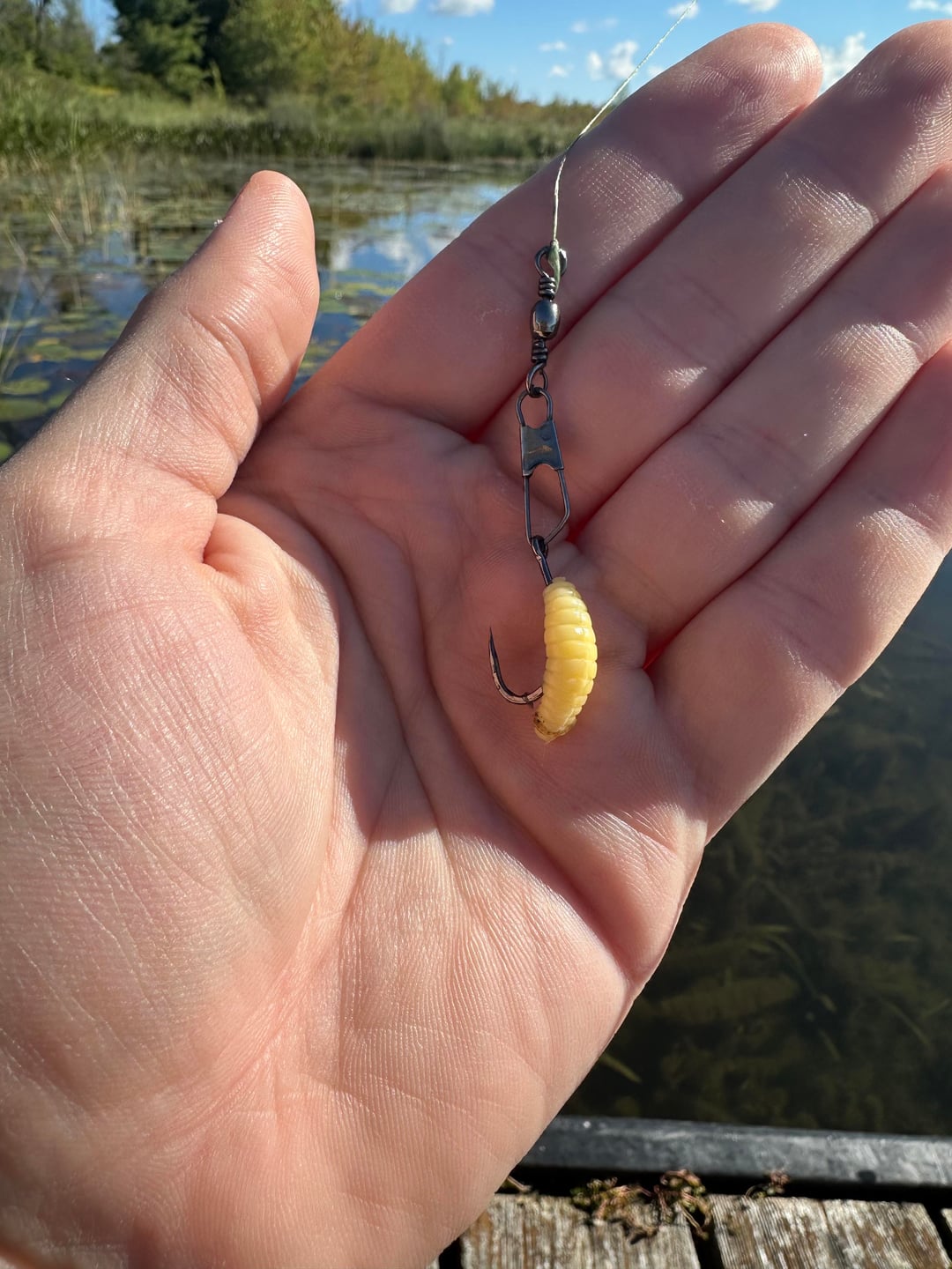 Fishing in a shallow weedy lake. Using a swivel hook so I can swap between baits.