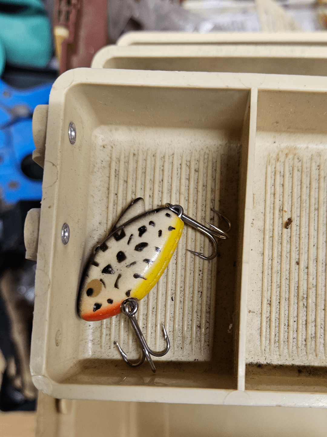 Hey all! Pretty sure I have an old Heddon Sonic here out of my grandfather'stackle box. I think it is pre 1960-ish with the gold eyes? I was hoping someone could help me identify the color pattern. I didn't see any markings on it at all. I can add more pics if I need too. Just don't have the tackle handy at the moment.