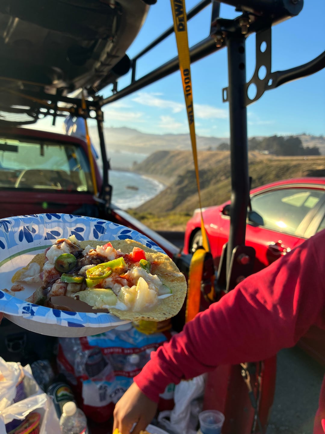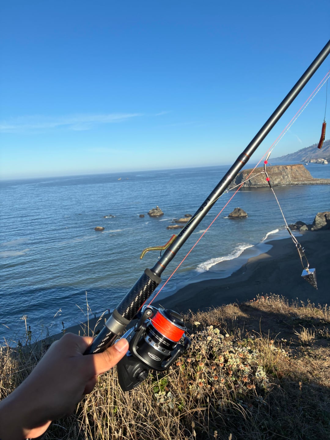 Hit the surf with the boyz yesterday. we got the AM and the PM bite. High-low rigs with mustard finese hooks. Camo/red/motoroil gulp sand worms. The waves were rough typical of Sonoma coast. Tailgate ceviche, cup noodles w sparkling wine/fish whistle to keeps us fueled throughout the day.