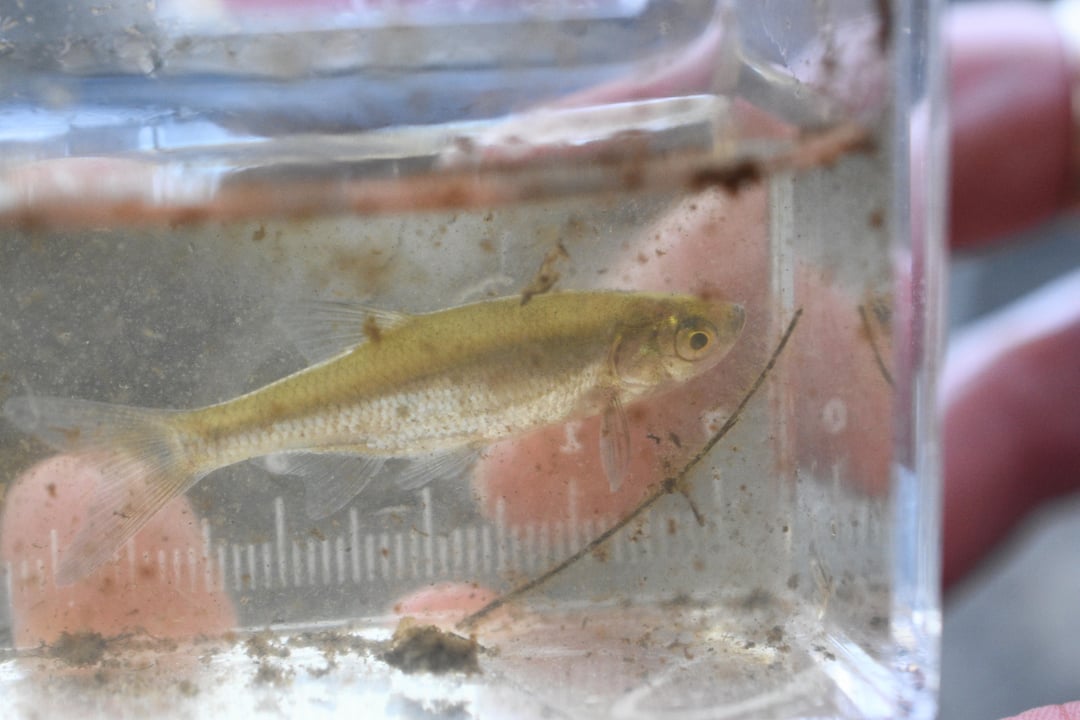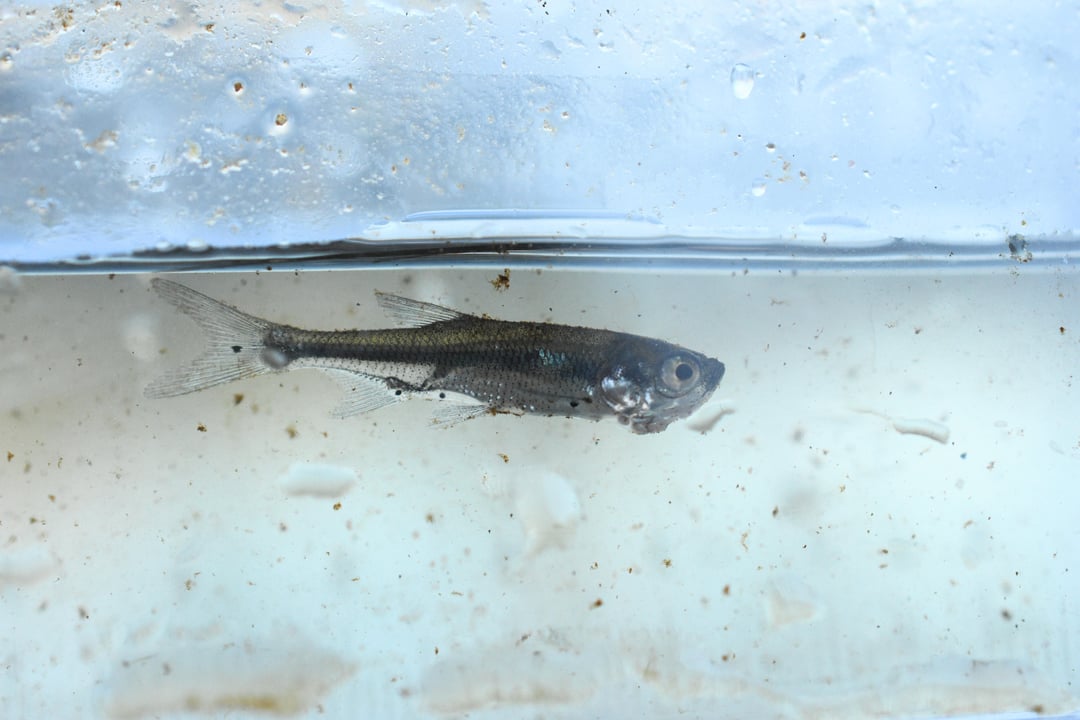 This beaver pond is less than 2 years old so it doesn't have much aquatic vegetation to support fish. However the streams that feed the pond (tiny, maybe 4 feet wide each) seem to have provided an abundance of small minnows. Unfortunately the water was extremely murky so pics were hard to get in my observation tank. I believe I have either one or two species here. No idea what they are though, any help would be appreciated!