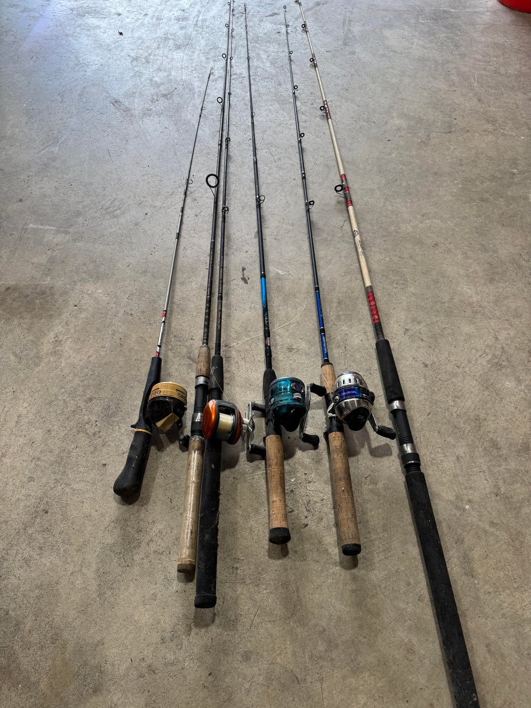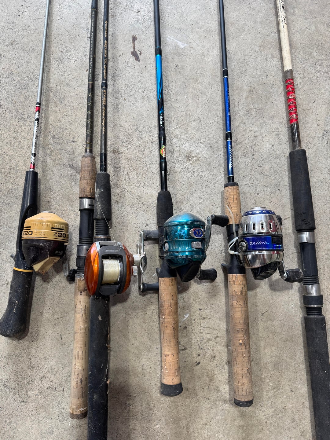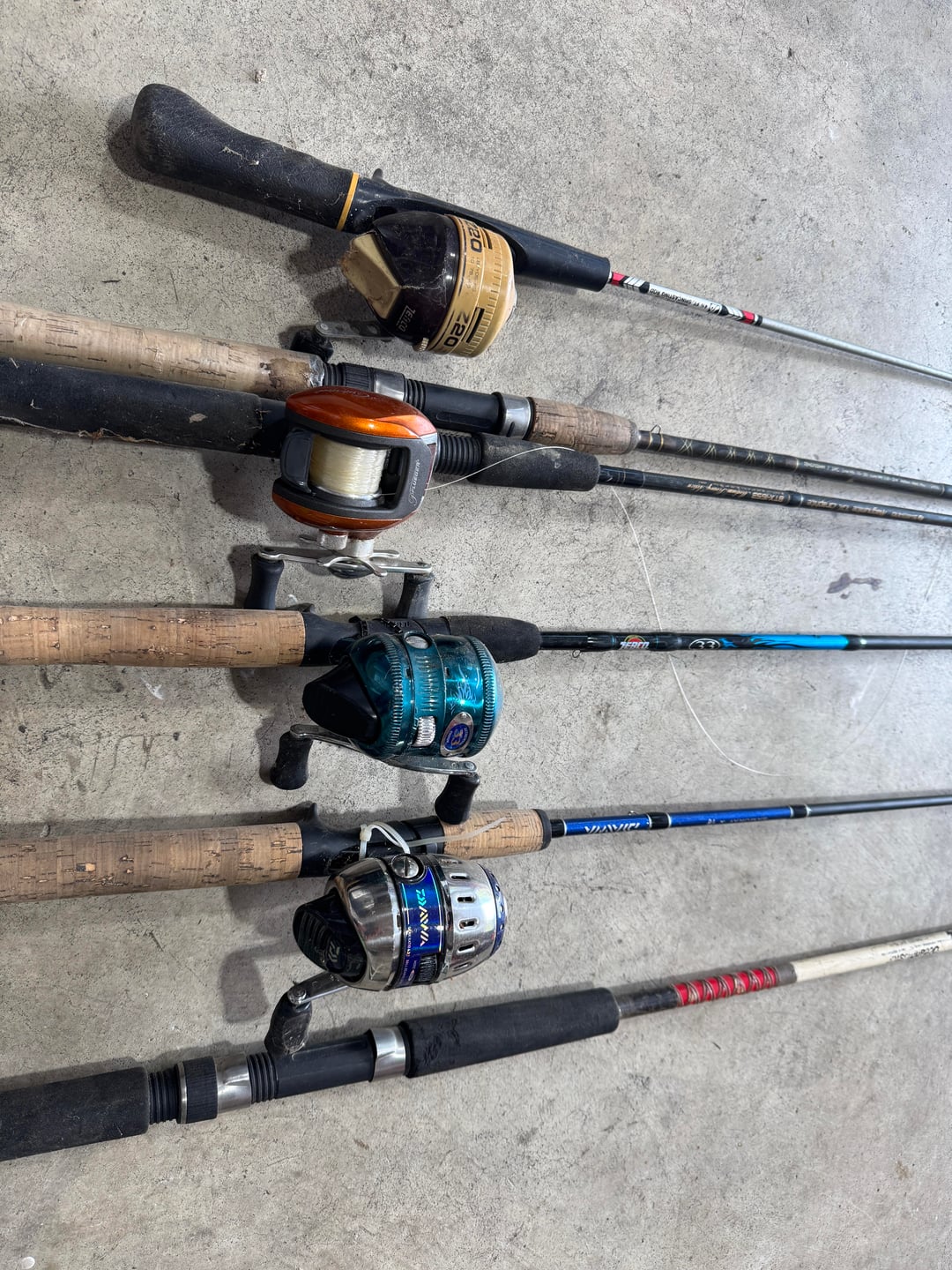 Was out walking this morning and appears a renter is being evicted. Garbage cans full of random stuff but I took the rods and reels that were not abused or trashed and figured I could at least clean them up and use them with the kids at the local fishing pond for fun.
