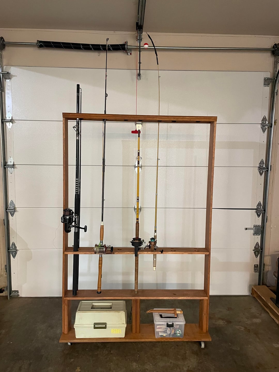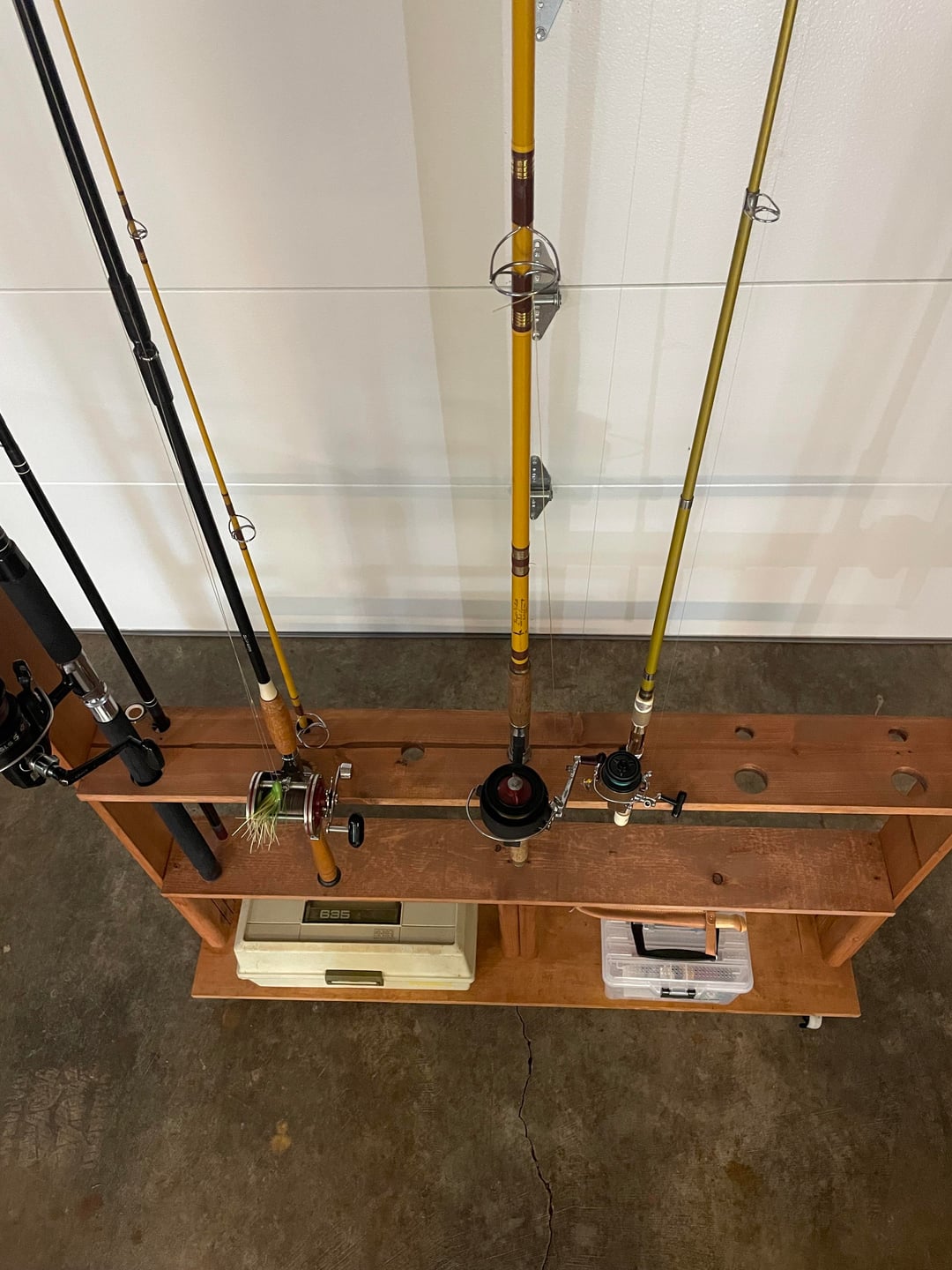 I’m very happy with my completed DIY project as it will allow me to store my fishing poles and gear while allowing me to continue to build up my fishing collection.