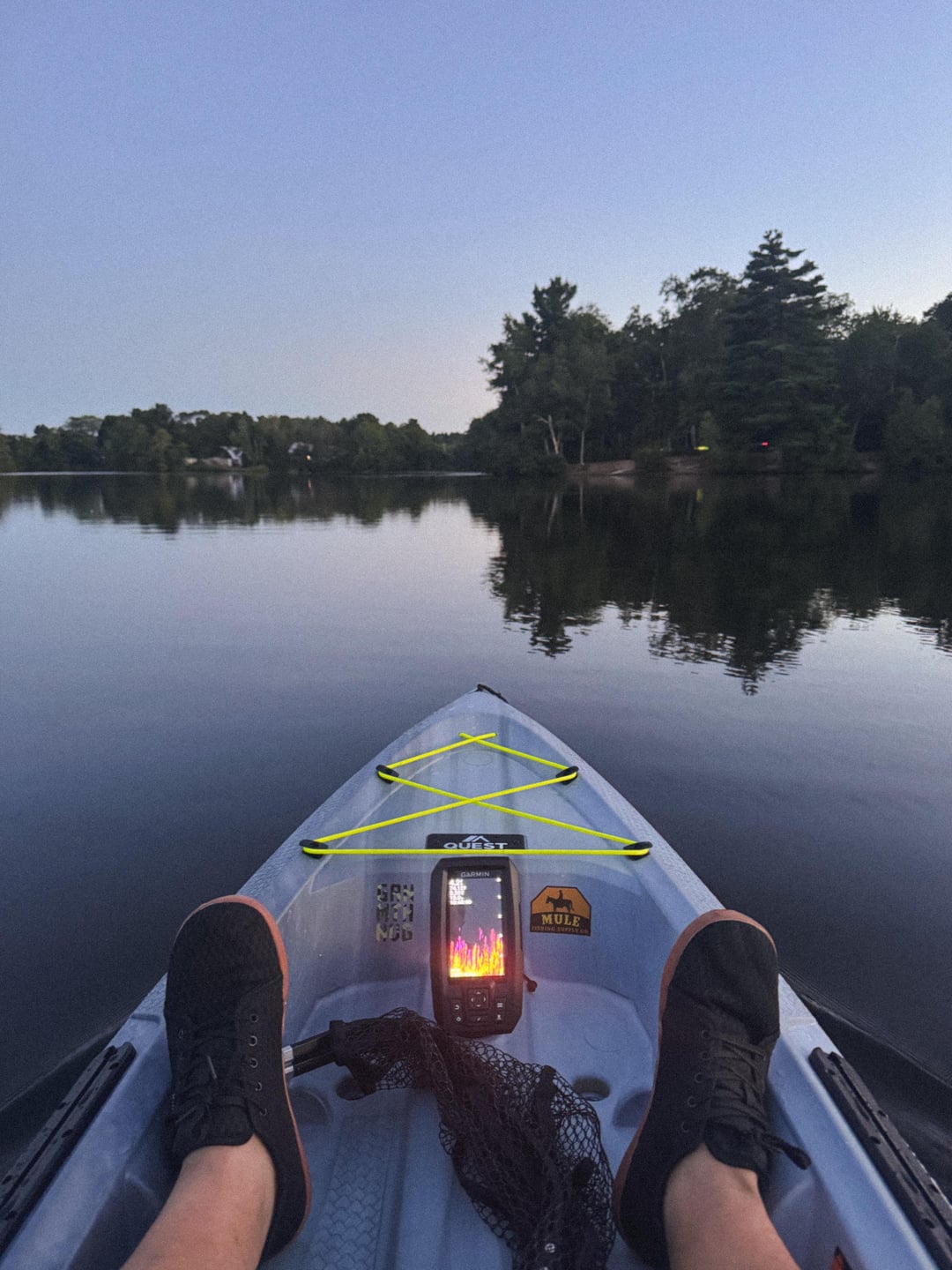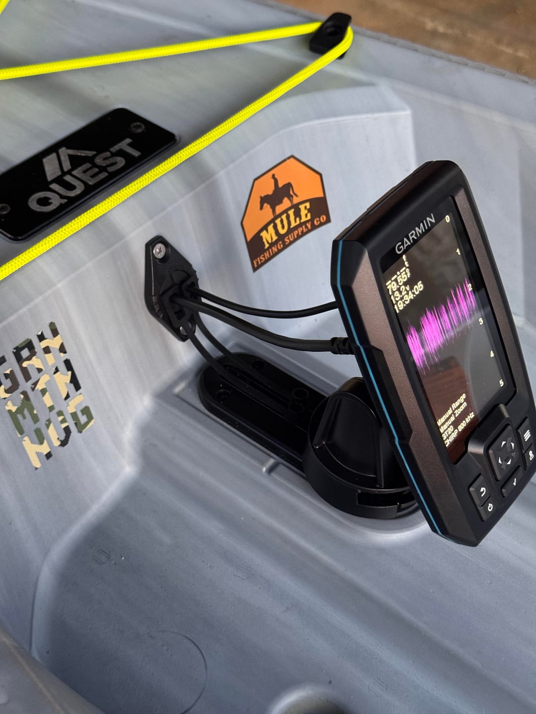 I haven’t seen very many in hull or budget sonar setups so here is mine. It’s a Quest Teton 100 with a Garmin Striker Vivid 4cv, mounted the transducer in hull with duct seal, stuck a 2lb 7AH LiFePO4 battery in there as well with 3M dual lock and drilled a hole to run the wires through a yak attack panel grommet. The GT20 transducer works just fine for me through the kayak and the cheapo battery powers the setup all day with minimal voltage drop. Very pleased to skip buying mounts and adding clutter to my small kayak for an easy setup that just works.