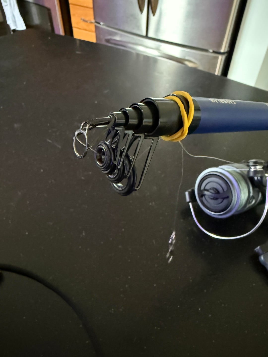 I got into fishing a few months ago and I bought a cheap kit from decathlon but has actually been great. I’m not easy on my gear so it’s kind of beat up already but still using it even though the soft piece of the top eyelet has broke off.