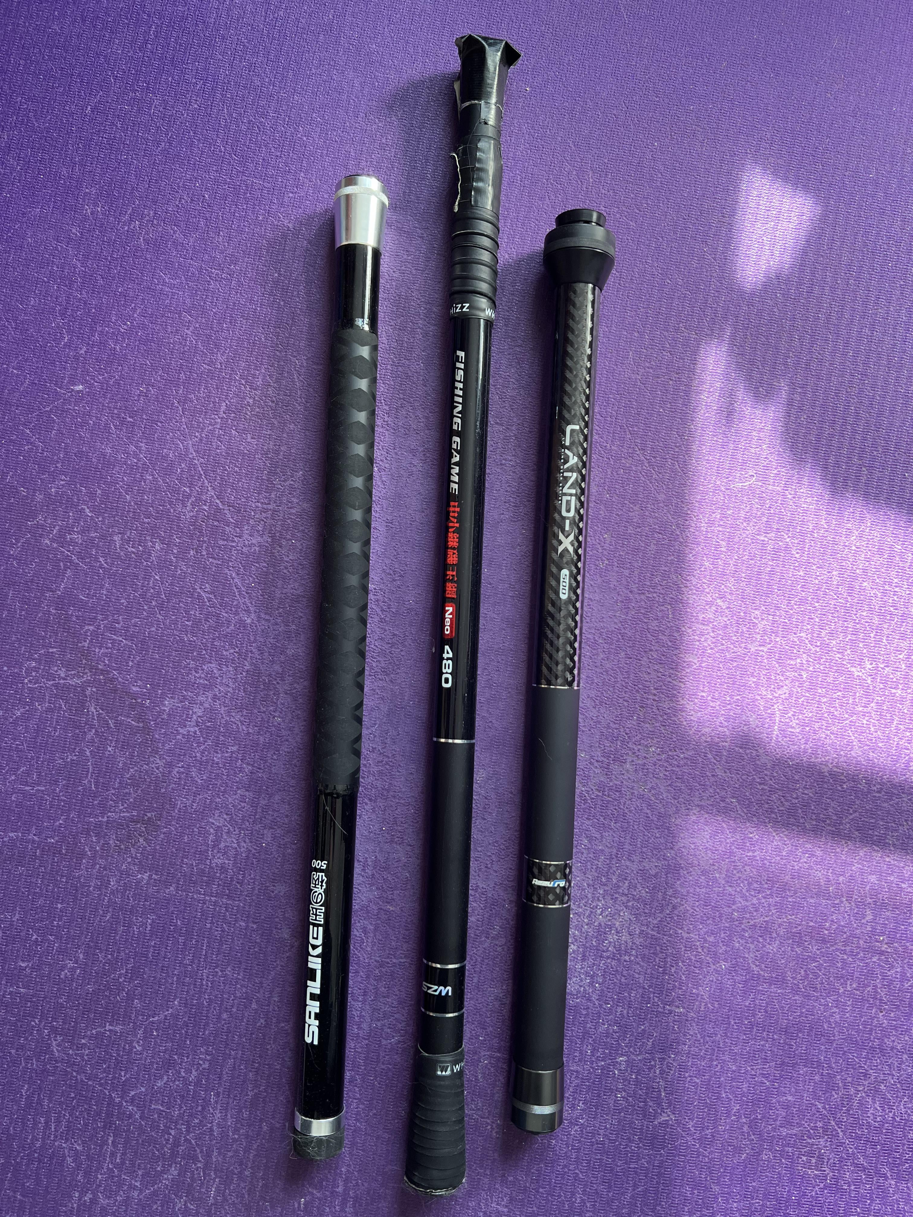 So I will prefix it with: these are not used for fishing by me :). I dance in a group that does a traditional-ish Japanese dance called Yosakoi. Though part of it is of course the dancing there is also a part of the tradition that uses really big flags as part of the performance. Traditionally the Japanese used these poles converted from landing poles (dunno if that's the name) which at this point are these carbon mix poles that have differing amount of flex to them. The ones I use are 5 meters (a little over 16 feet) when extended, but we have ones that go to 7 meters (over 22 feet), and the flags are pretty big and many are heavy (double stitched). So as you can imagine these things tend to break after a ton of use, and it's been a PITA to find these in the US. The ones you see in the picture all come from Japan.