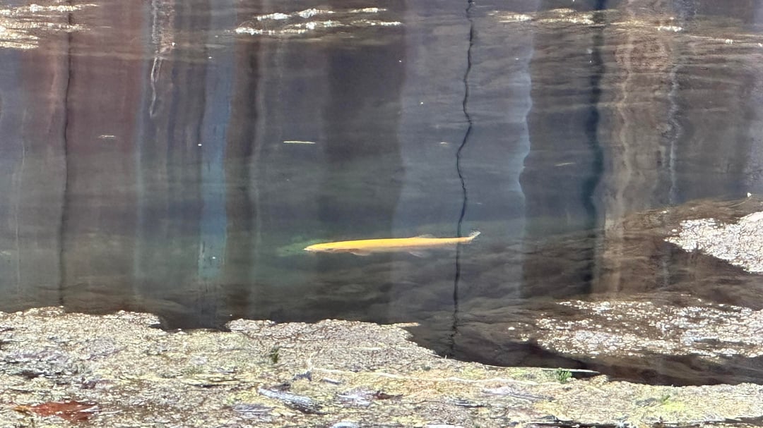 Spotted this beauty on my last trip to Bennett Springs. Swam away into the moss after I took the pictures. Posted by Due_Chipmunk_2523