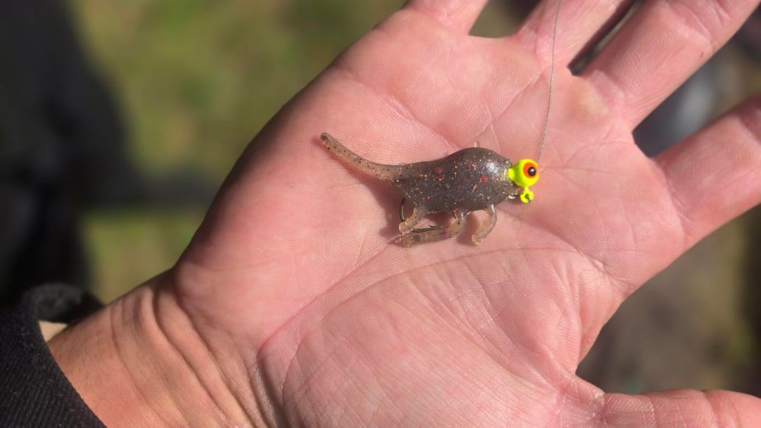 I call this one the Jug Bug. Designed specifically for a ball head jig. It dances pretty good. This small mouth is the biggest ive ever caught Posted by fpv07