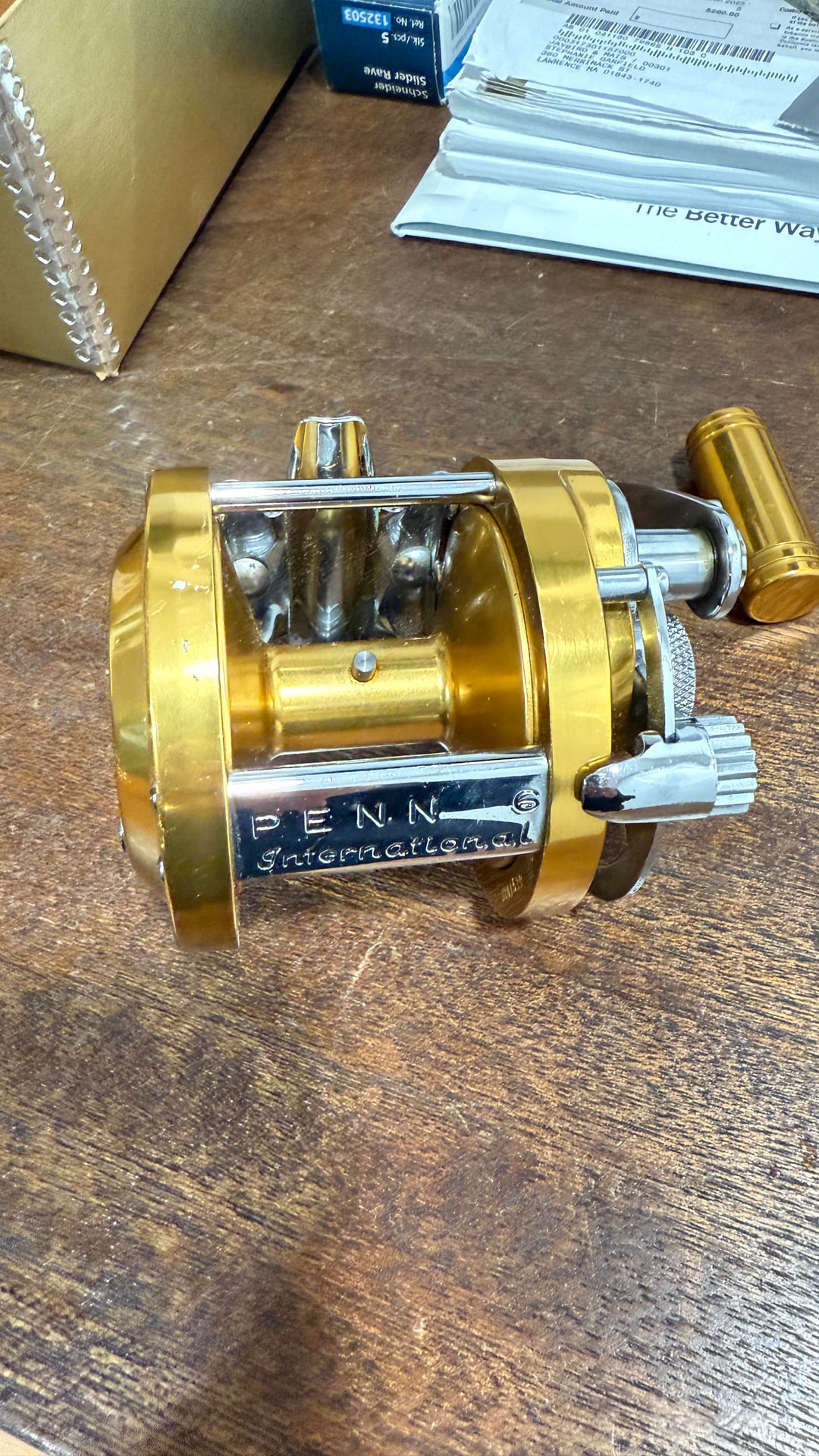Found this old penn international 6 in my grandfathers house. Has the original box, original reel bag, and an additional service receipt from 1988.