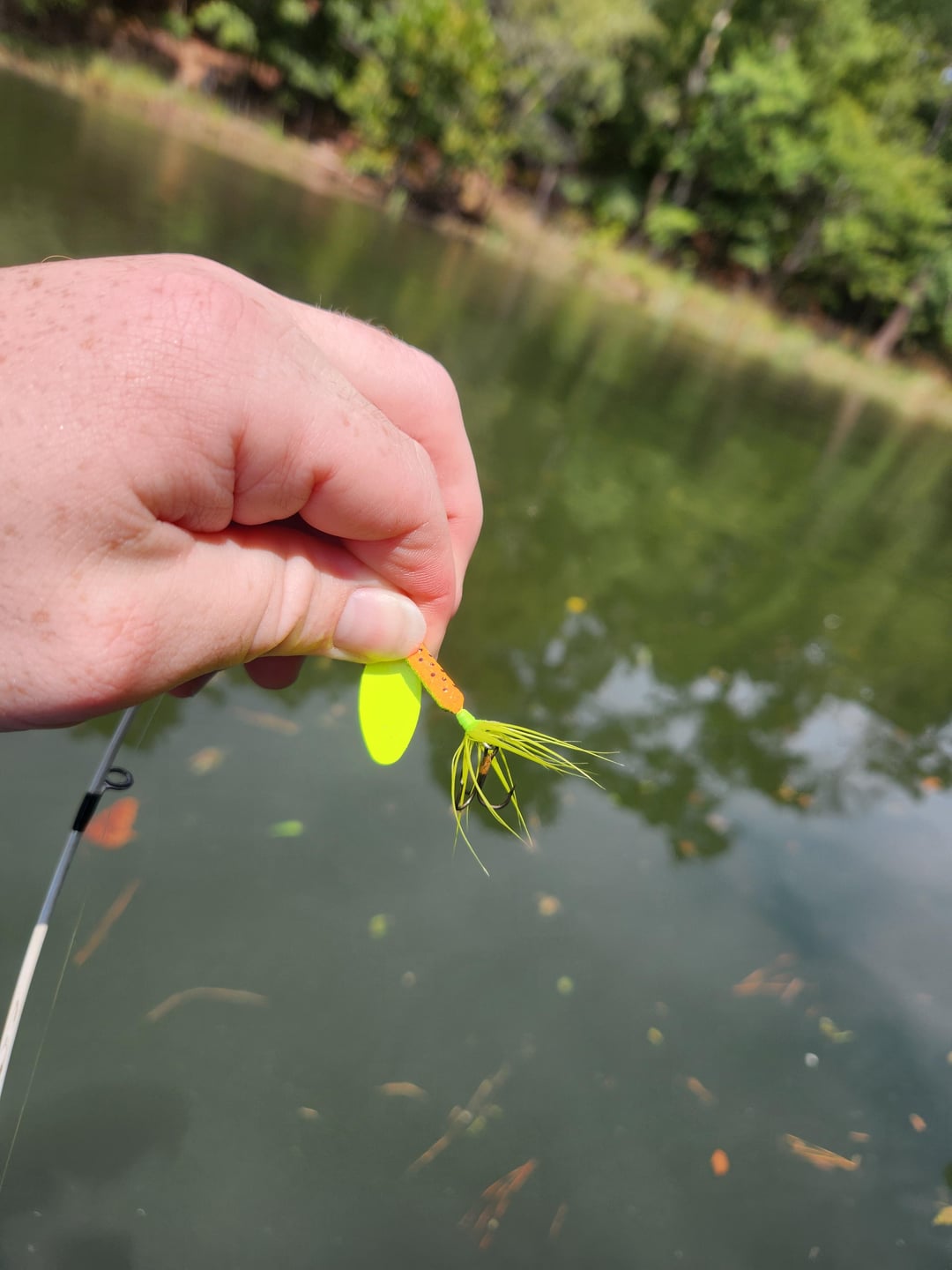 When you reel it in you should be able to see the flashes of the blade when it gets closer to you. Get a variety pack of those roostertails so you can switch them up depending on the water/weather