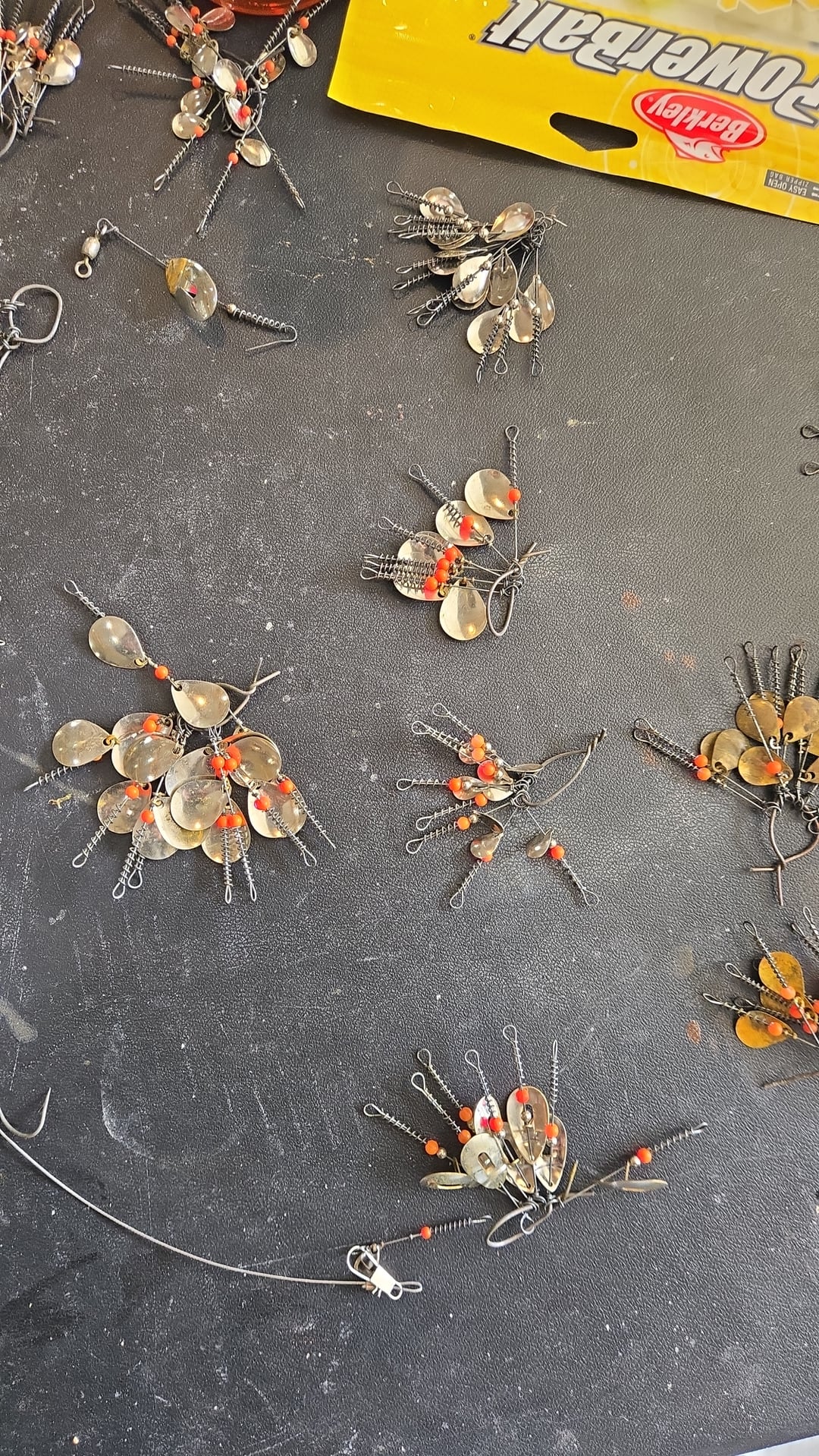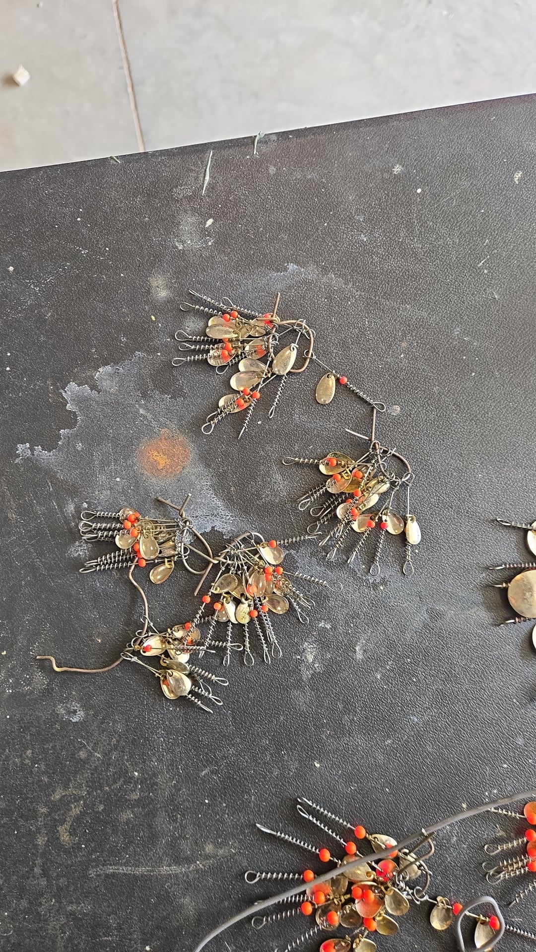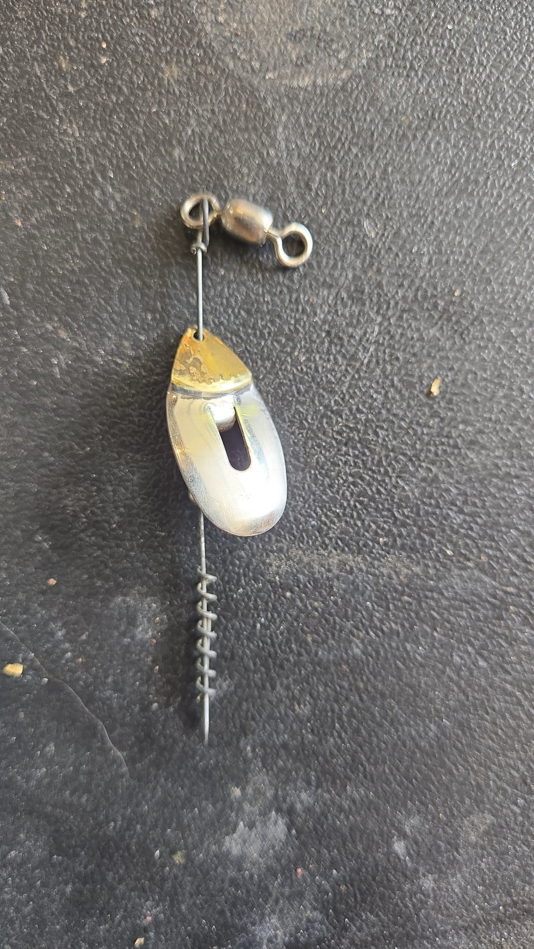 It’s an old school spinner. Pull up the spring, put a hook on the loop, the spring retains the loop. You can tie tail material around the spring, like chicken feathers or animal hair.