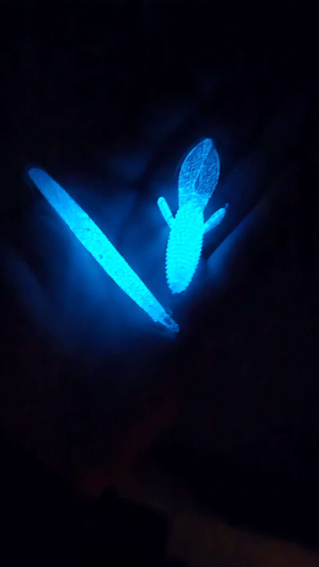 The 3orm (3 worm) and the mini creature came out great in my Blue Lazer color