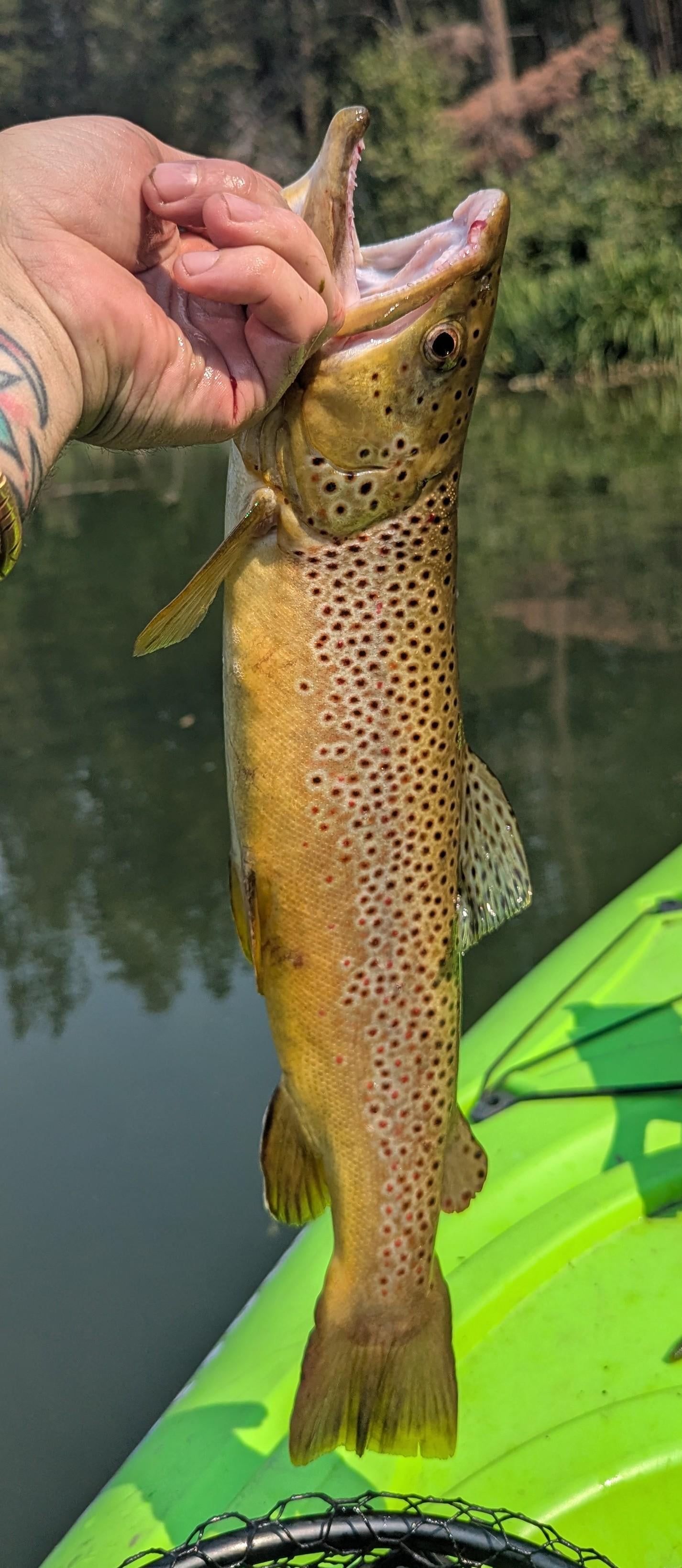 Dark murky water, and a bright yellow/green crankbait. Which contradicts everything I've been learning, but everything was hitting it. Bass/perch/ this guy. 🤷🏻 Posted by SpaghettioChef