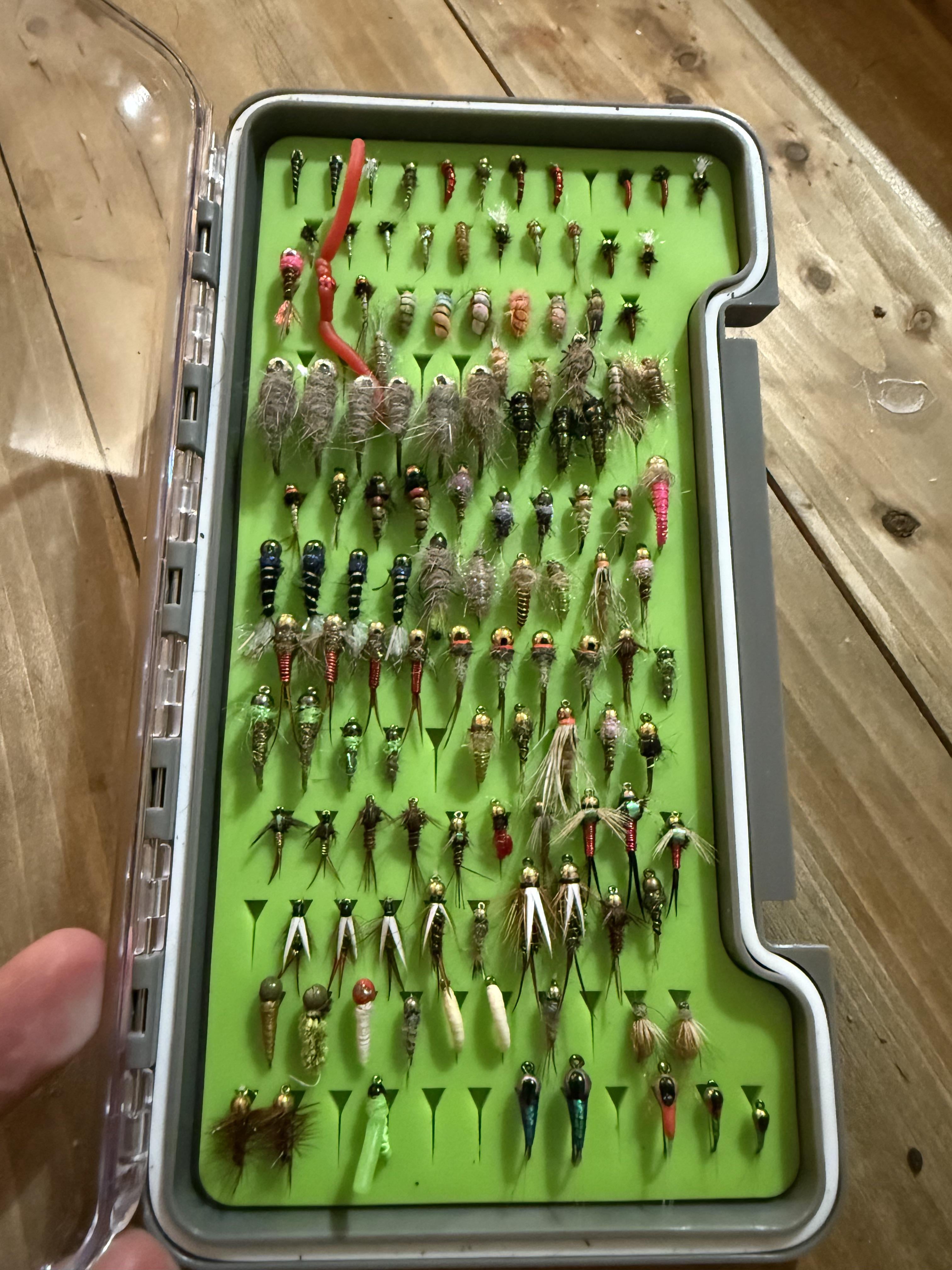Went fishing this morning and stopped in the parking to talk to one of the old heads about his luck for the day. Well it turned into a forty min yap session, and when I told him I just started fly fishing early this summer he gave me 25-30 nymphs he tied. Hell of a guy.