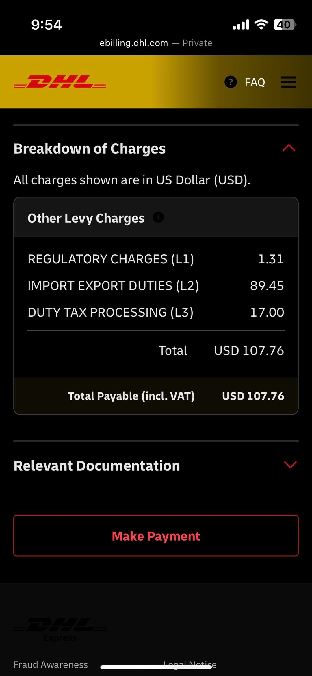 If anyone was wondering how the tariff stuff works for DHL. They sent me a text and email to pay for the fee then you can pay via PayPal or credit card.