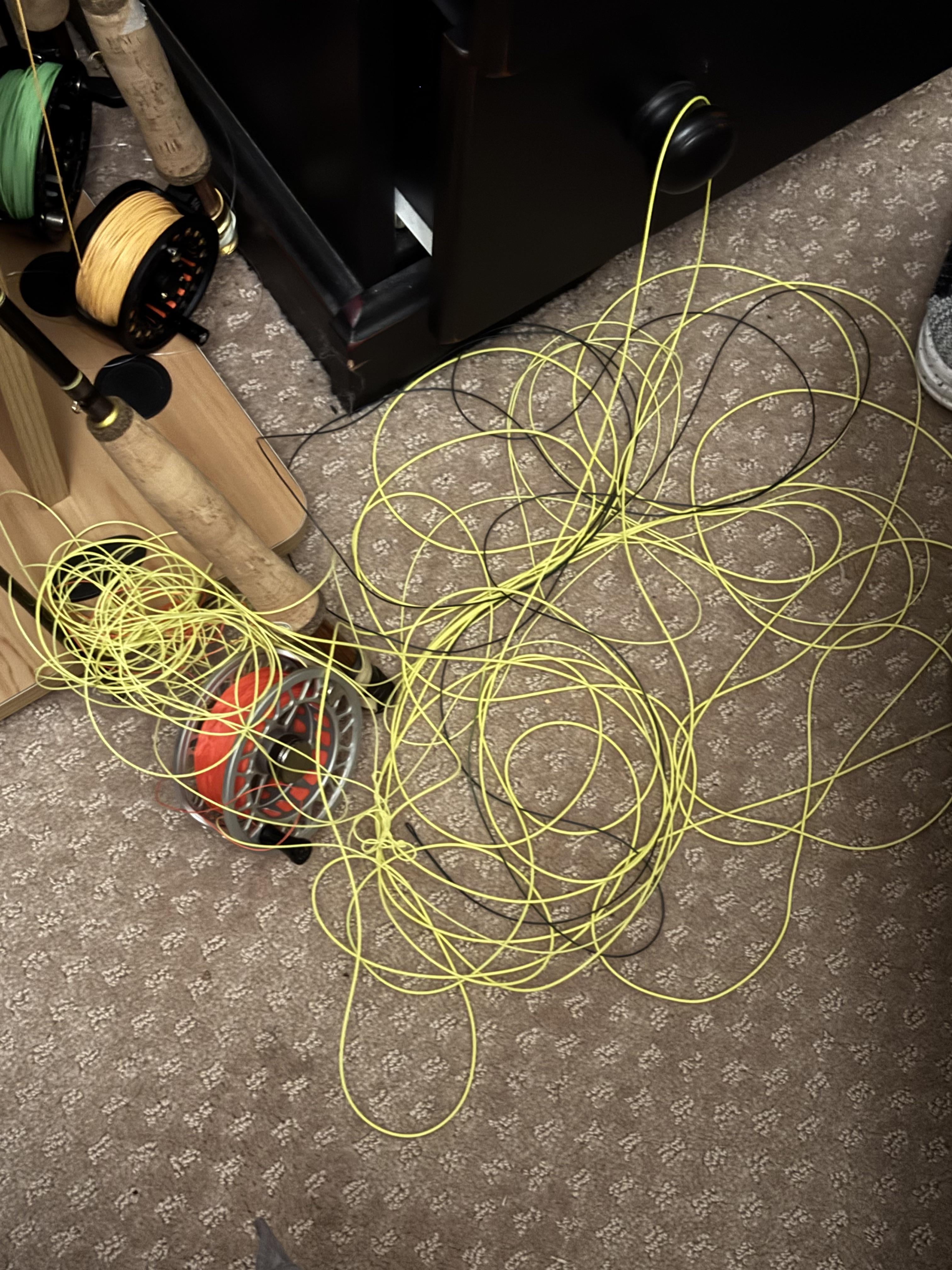 Asked my buddy that doesn’t fish to help spool my reel and came back to this monstrosity. It’s got several tight knots throughout the line. Even if I spend the hours trying to get this untangled, is the line gonna be in worse condition anyway? This is brand new fresh out of the box 70 dollar sink tip line.