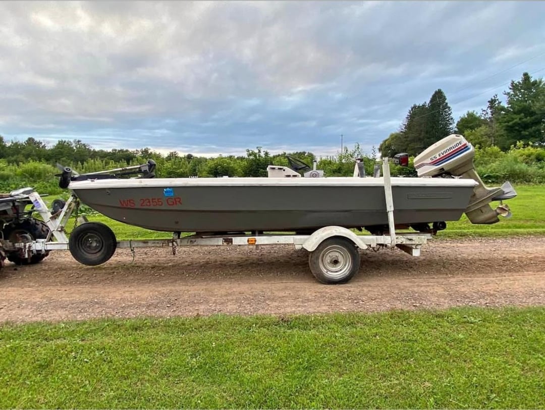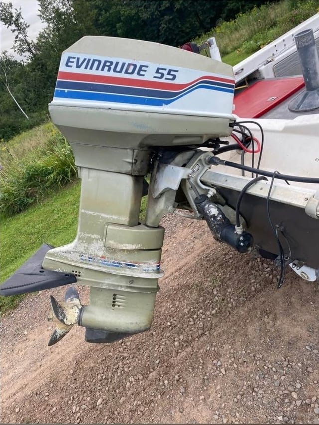 Its a 15ft boat with a 55hp evinrude on the back, also has a 55lb trolling motor. Looking at buying it just cause its 500$ with a running motor Posted by phantom2008141